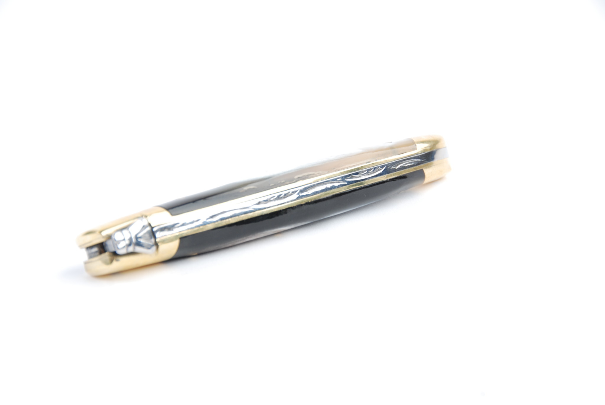 Dit regionaal Frans mes heeft zijn oorsprong in de Pyreneeën. Hoorn is een natuurlijk product, elk zakmes in hoorn kan er dus anders uitzien.