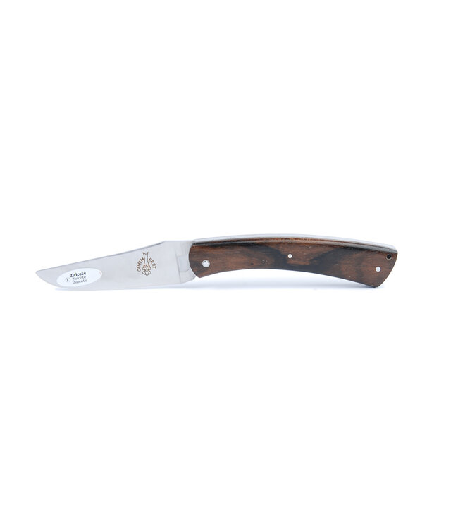 Eenvoudig maar sterk Camembertmes met een heft uit ziricote. Lees meer.
