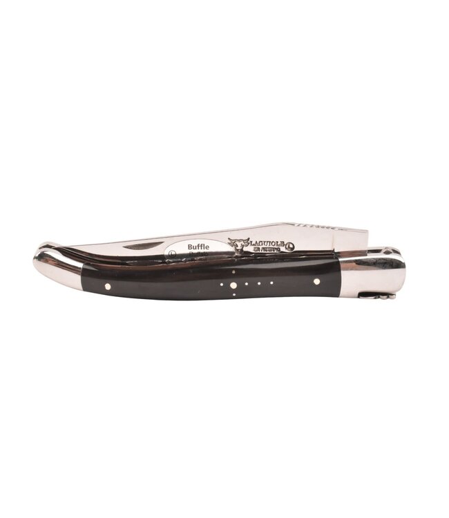 Laguiole en Aubrac 12 cm zakmes met prachtig heft in zwart buffelhoorn
