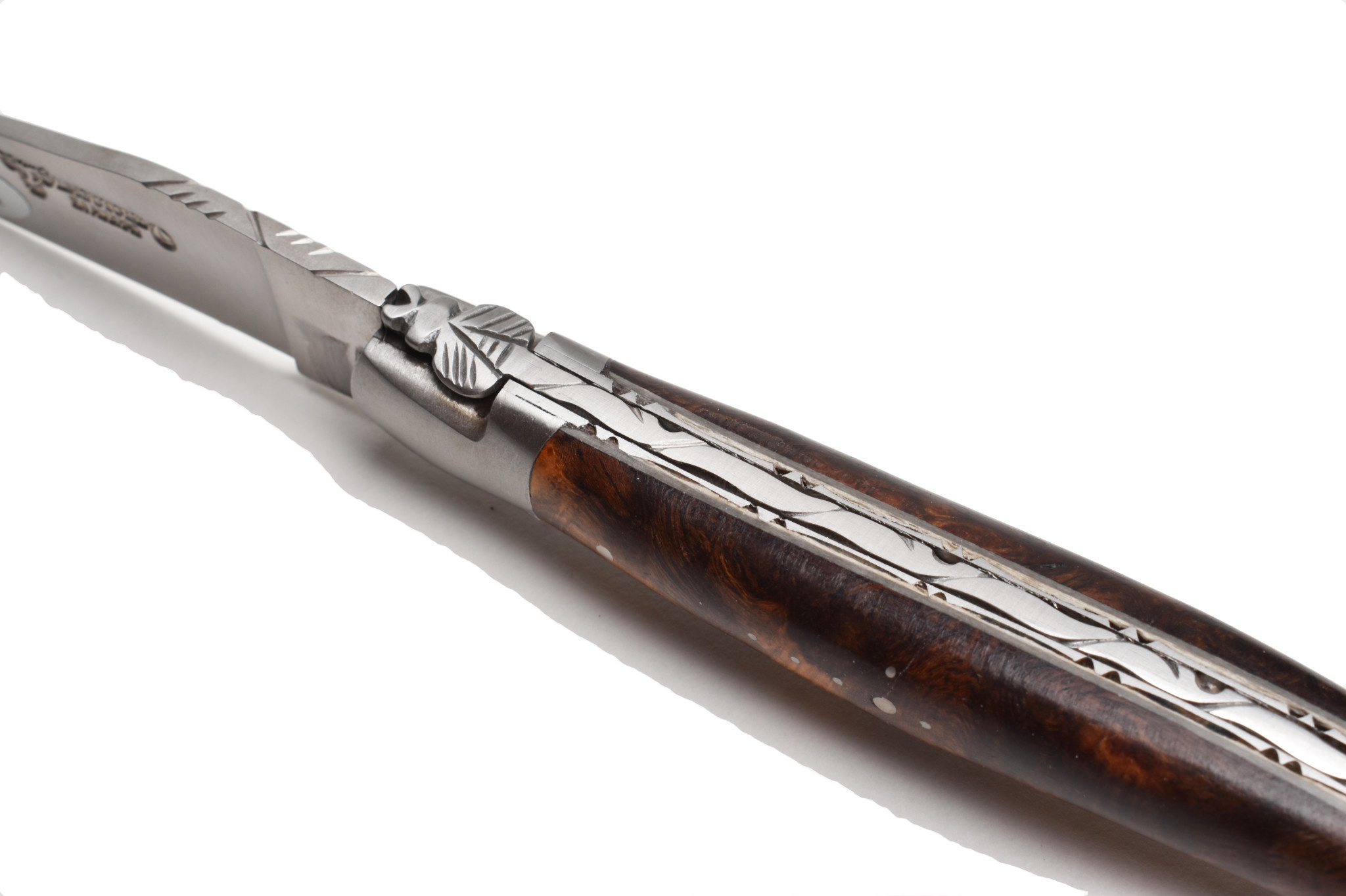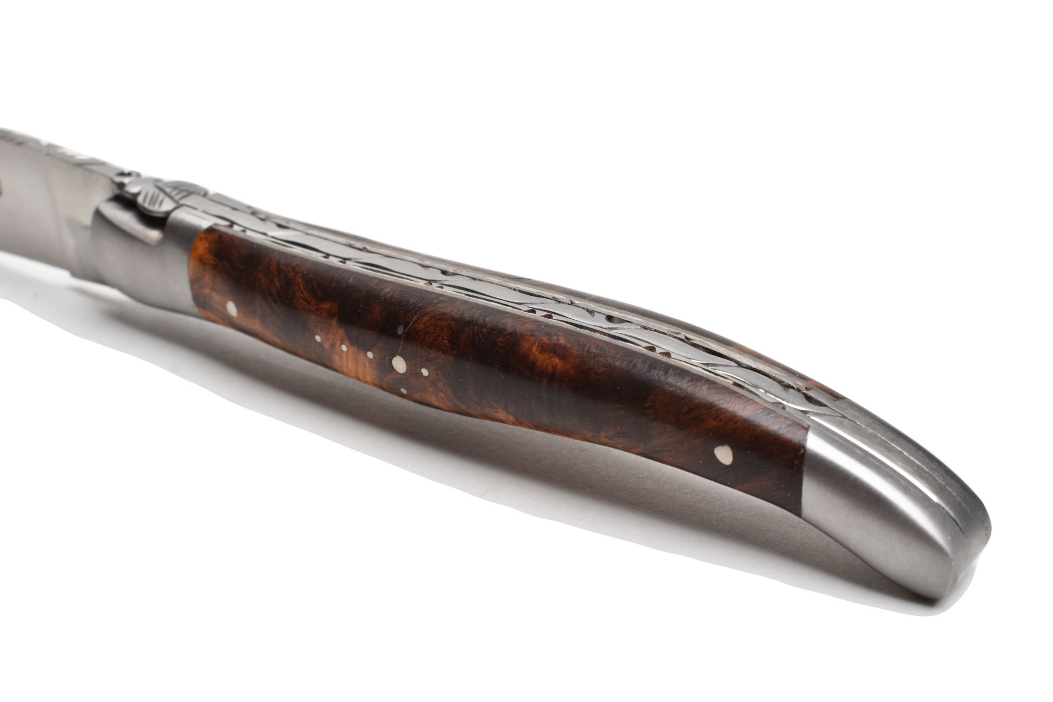 Laguiole en Aubrac 12cm loupe bois de fer - platines guillochées - mat