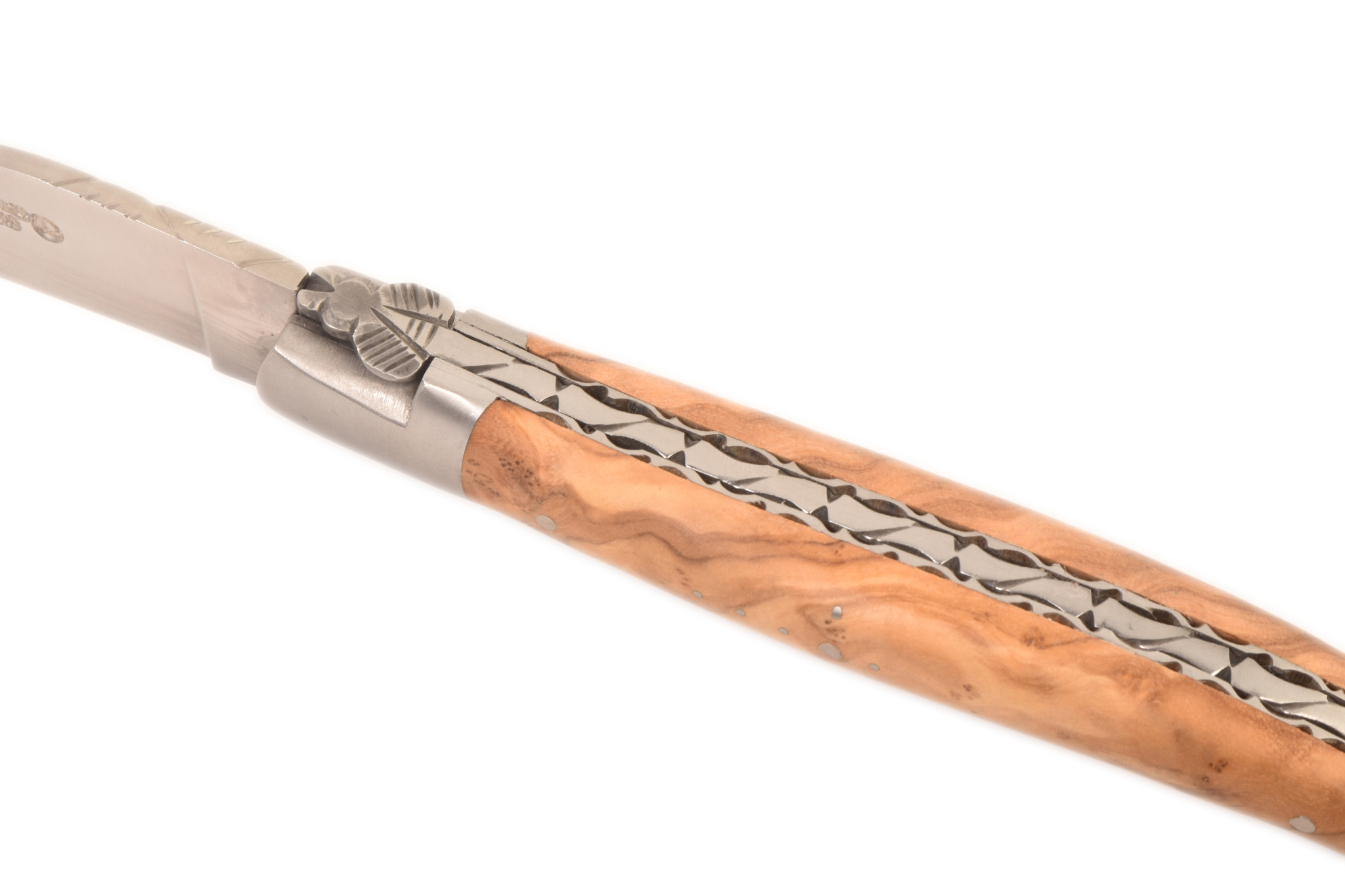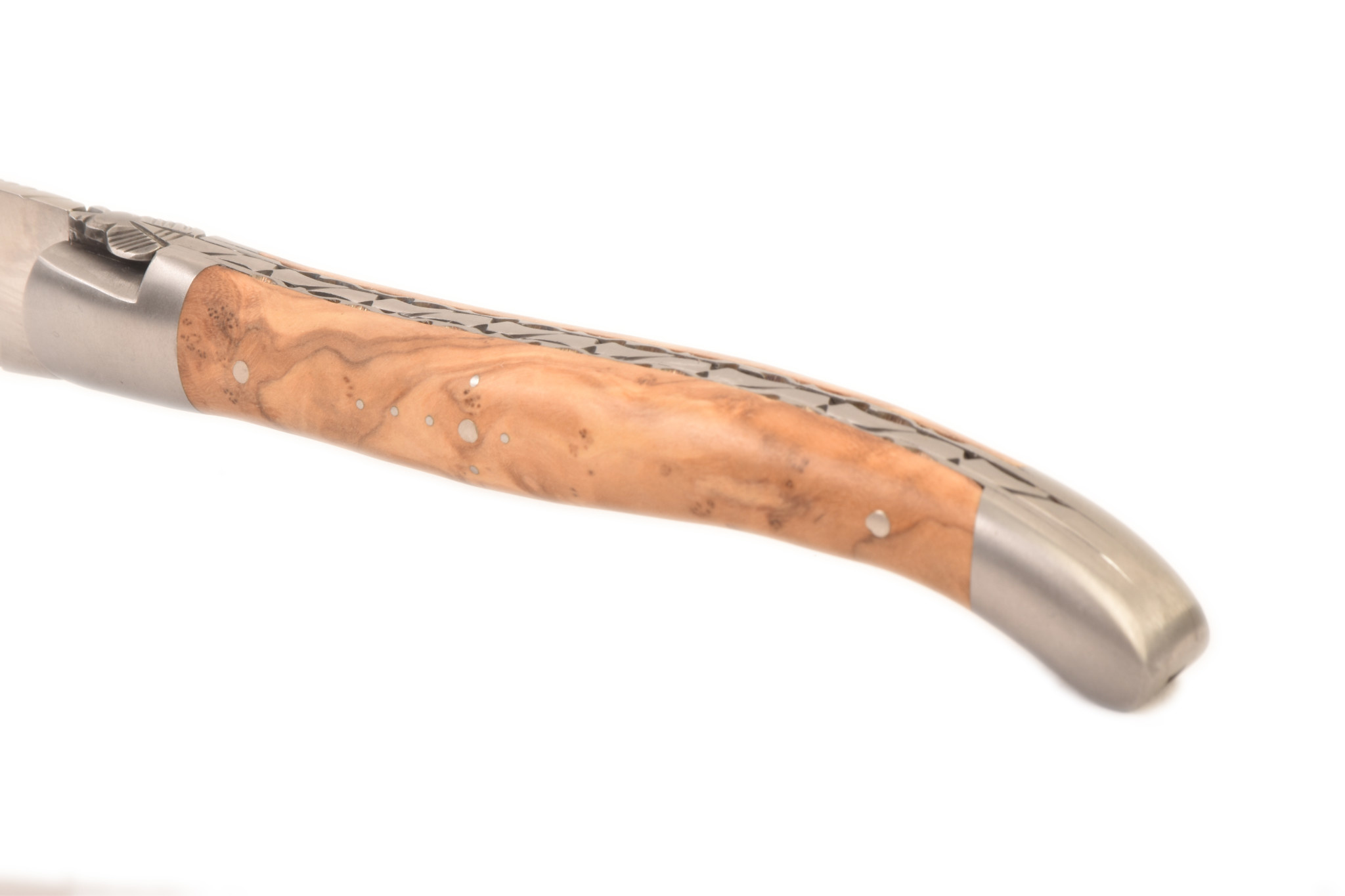 Laguiole en Aubrac 12 cm Olivier - platines guillochées - mat