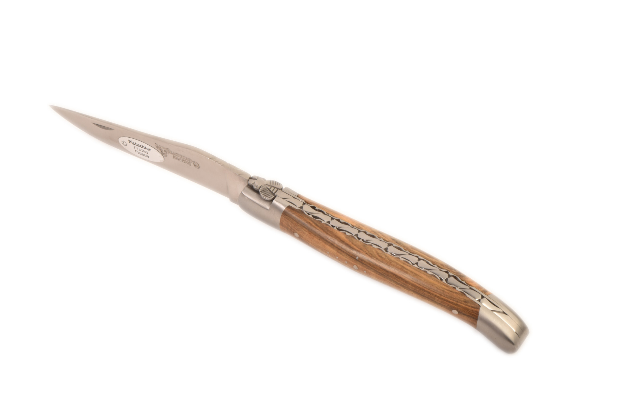 Laguiole en Aubrac 12cm pistache - platines guillochées - mat