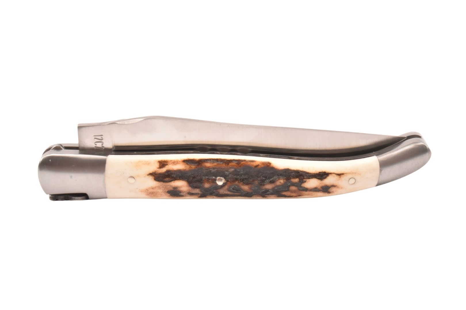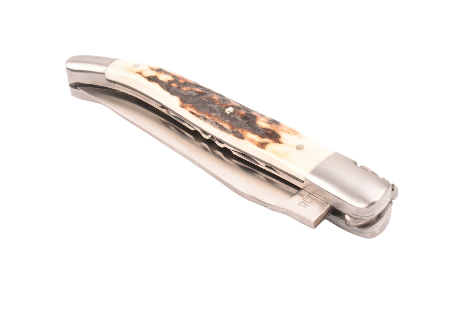 Laguiole en Aubrac mes van 12 cm met prachtig heft in hertshoorn, matte eindstukken en double platines