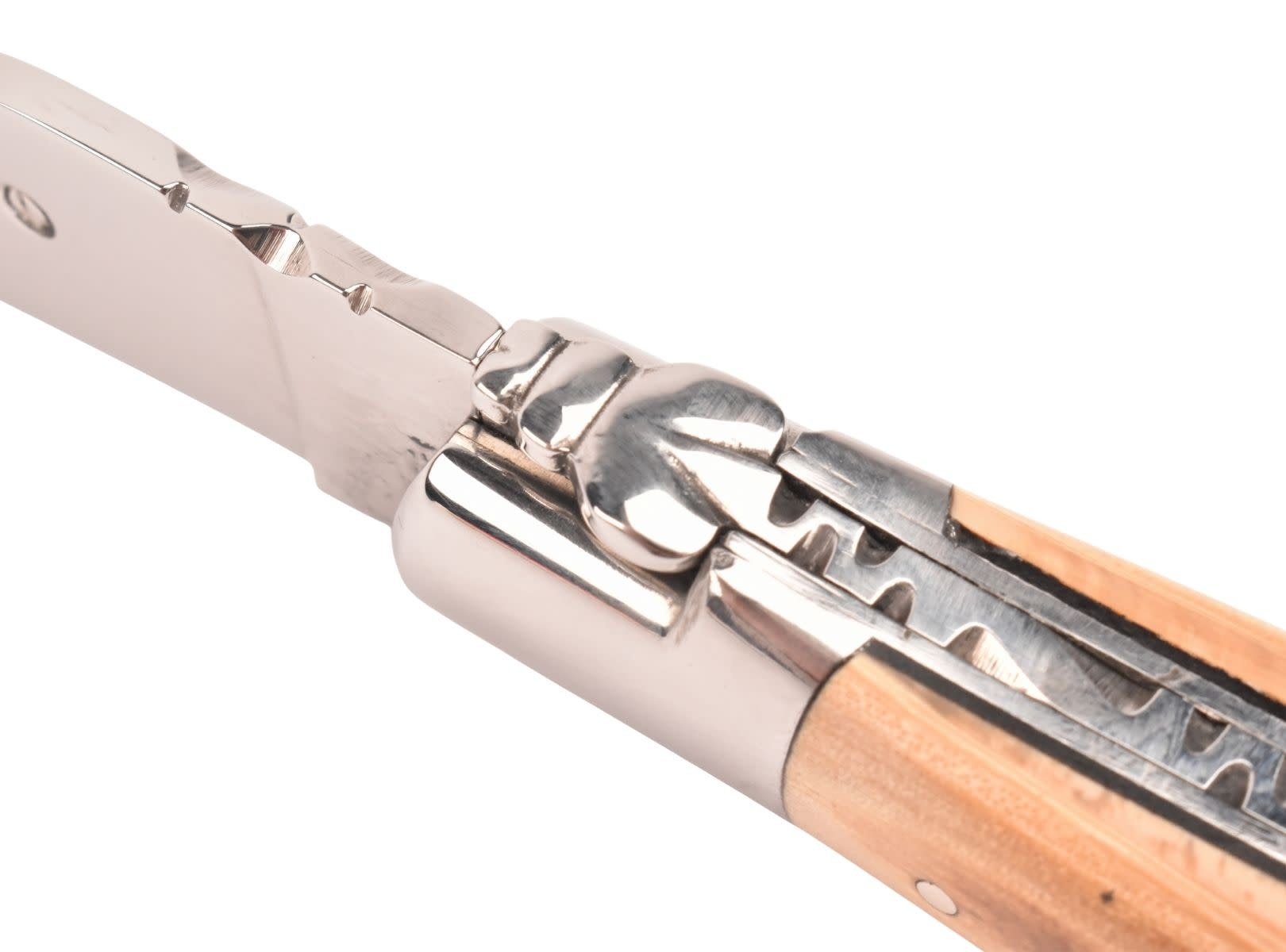 Laguiole en Aubrac zijn klassevolle handgemaakte messen met zeer veel oog voor detail. De messen zijn gemaakt volgens eeuwenoude traditie en authentiek vakmanschap. Om de authenticiteit van het mes te verzekeren is de rug voorzien van het typische kenmerkend Laguiole bijtje en het herderskruis in de handgreep.