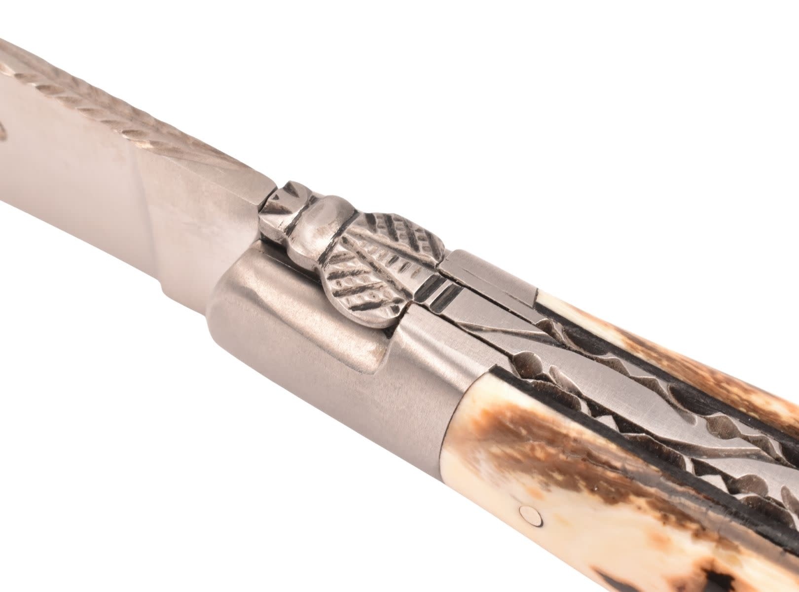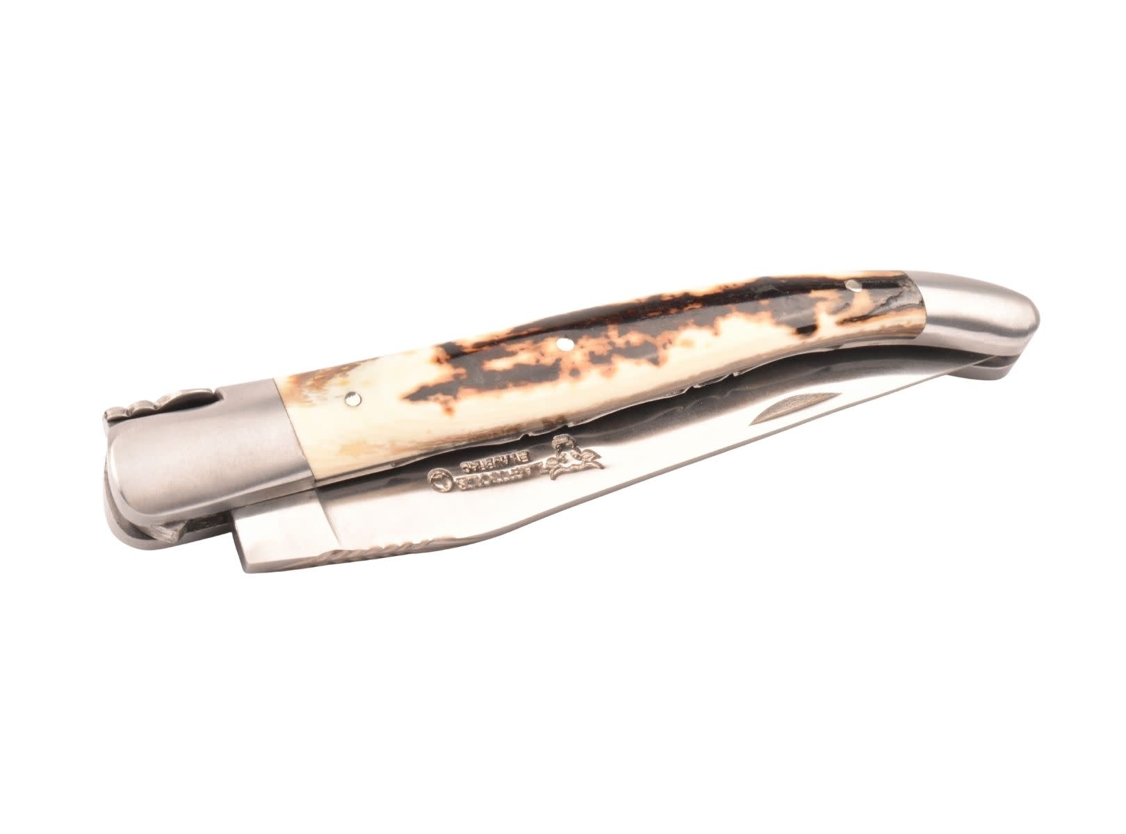 Laguiole en Aubrac mes van 12 cm met prachtig heft uit ivoire de mammouth, platines guillochées, matte eindstukken
