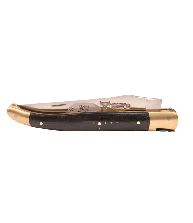 Laguiole en Aubrac mes van 12 cm met prachtig heft in ebbenhout, met messing eindstukken en plaatjes en speciale bij n°13