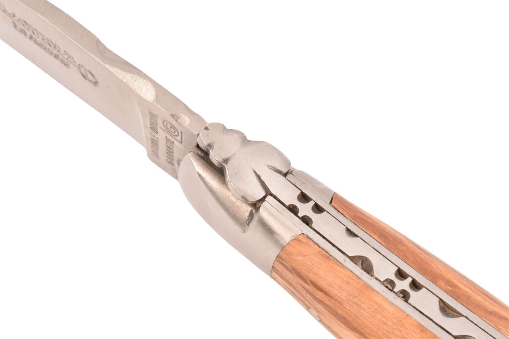 Laguiole en Aubrac zijn klassevolle handgemaakte messen met zeer veel oog voor detail. De messen zijn gemaakt volgens eeuwenoude traditie en authentiek vakmanschap. Om de authenticiteit van het mes te verzekeren is de rug voorzien van het typische kenmerkend Laguiole bijtje en het herderskruis in de handgreep.