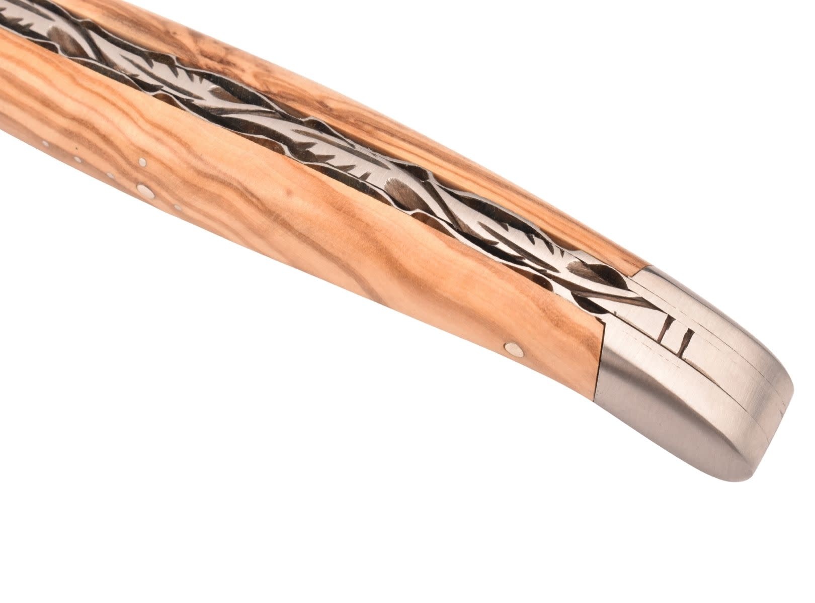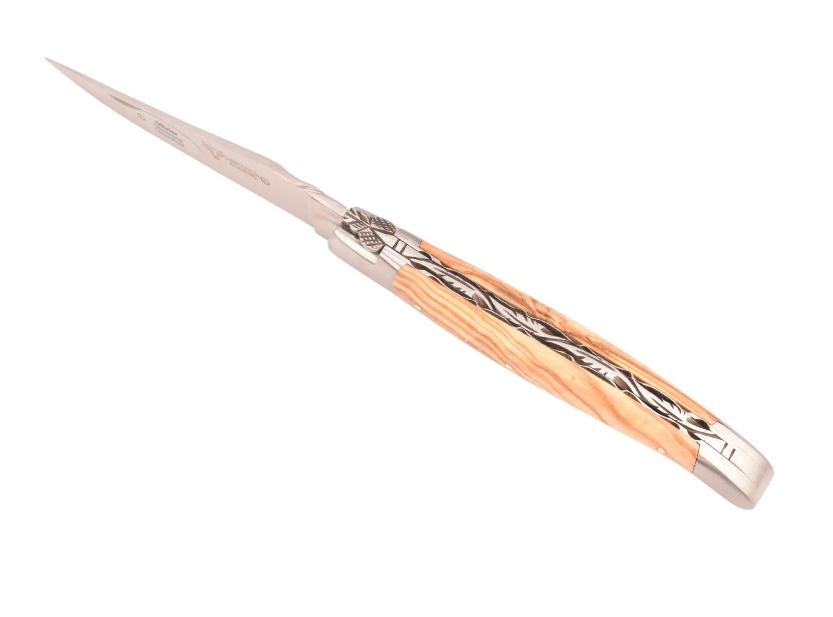 Laguiole en Aubrac 12cm olijfhout - platines guillochées - mat