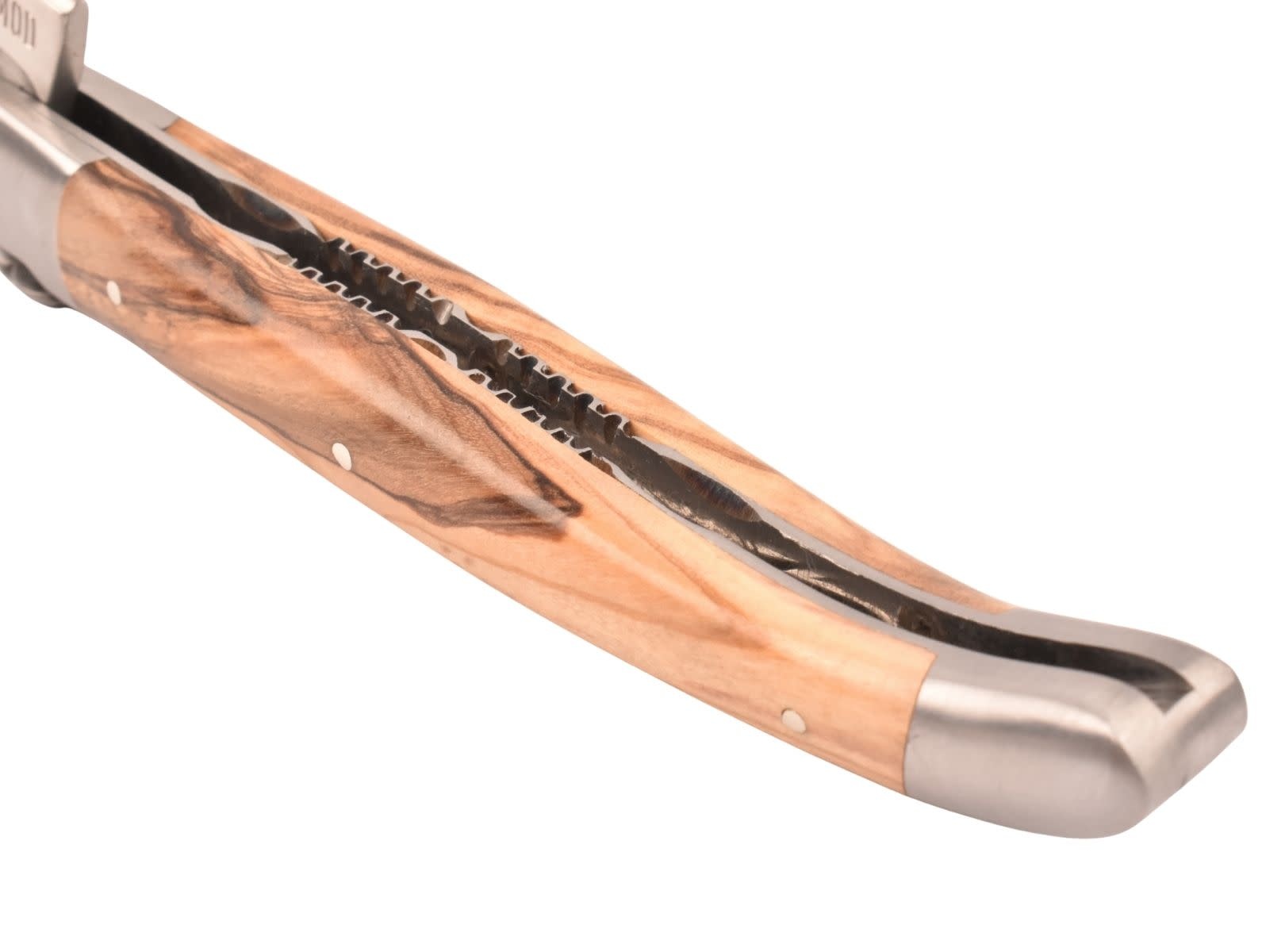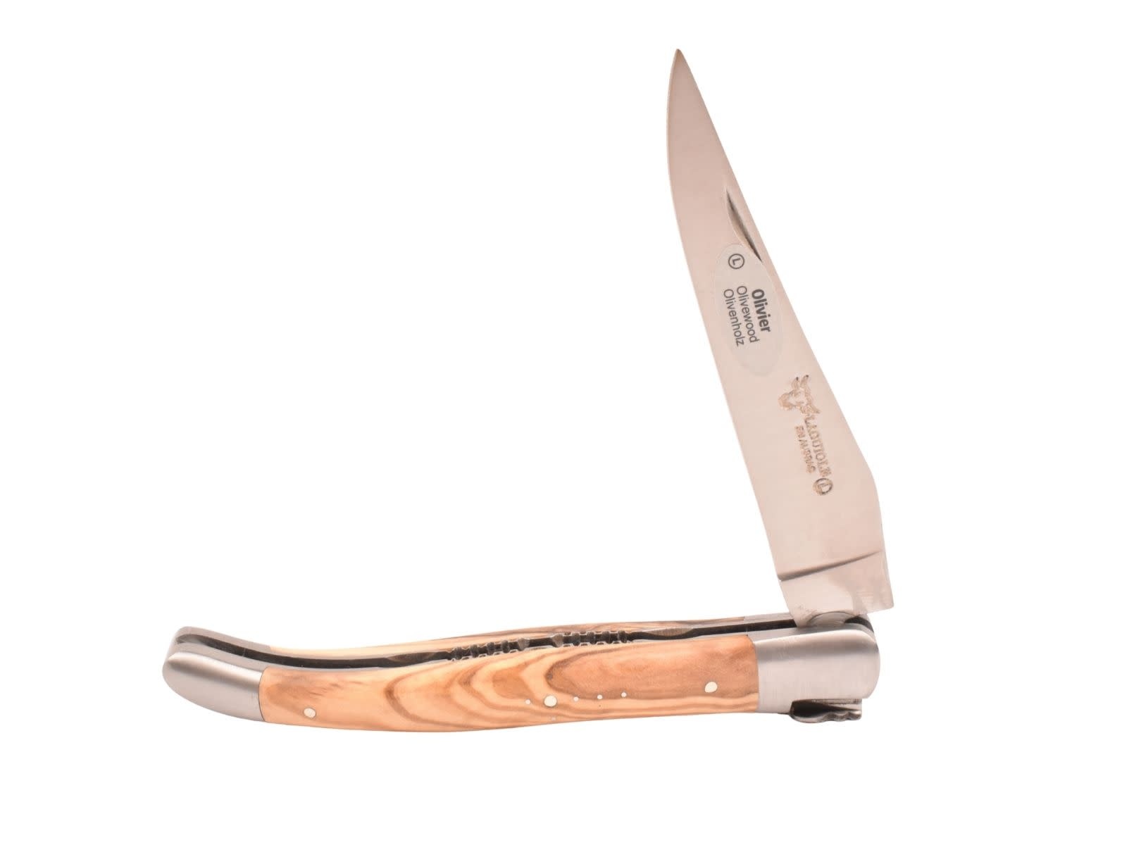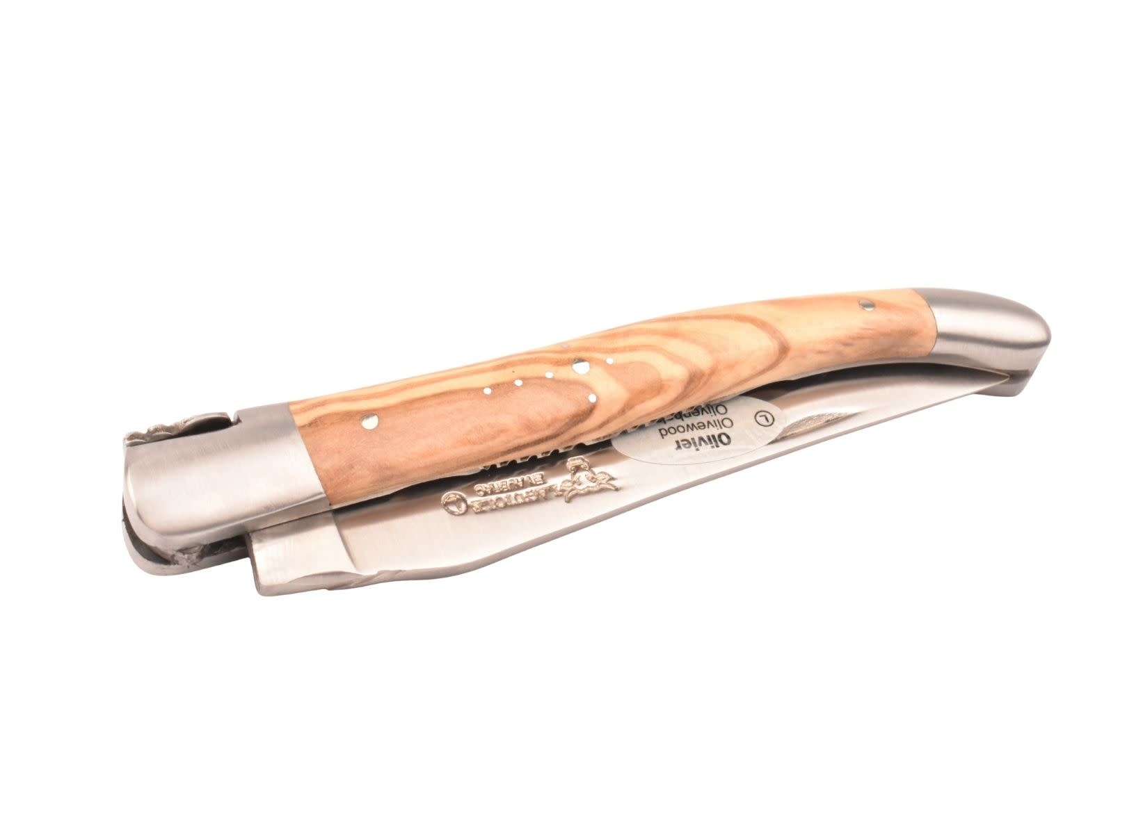 Laguiole en Aubrac mes van 12 cm met prachtig heft uit olijfhout, platines guillochées, matte eindstukken