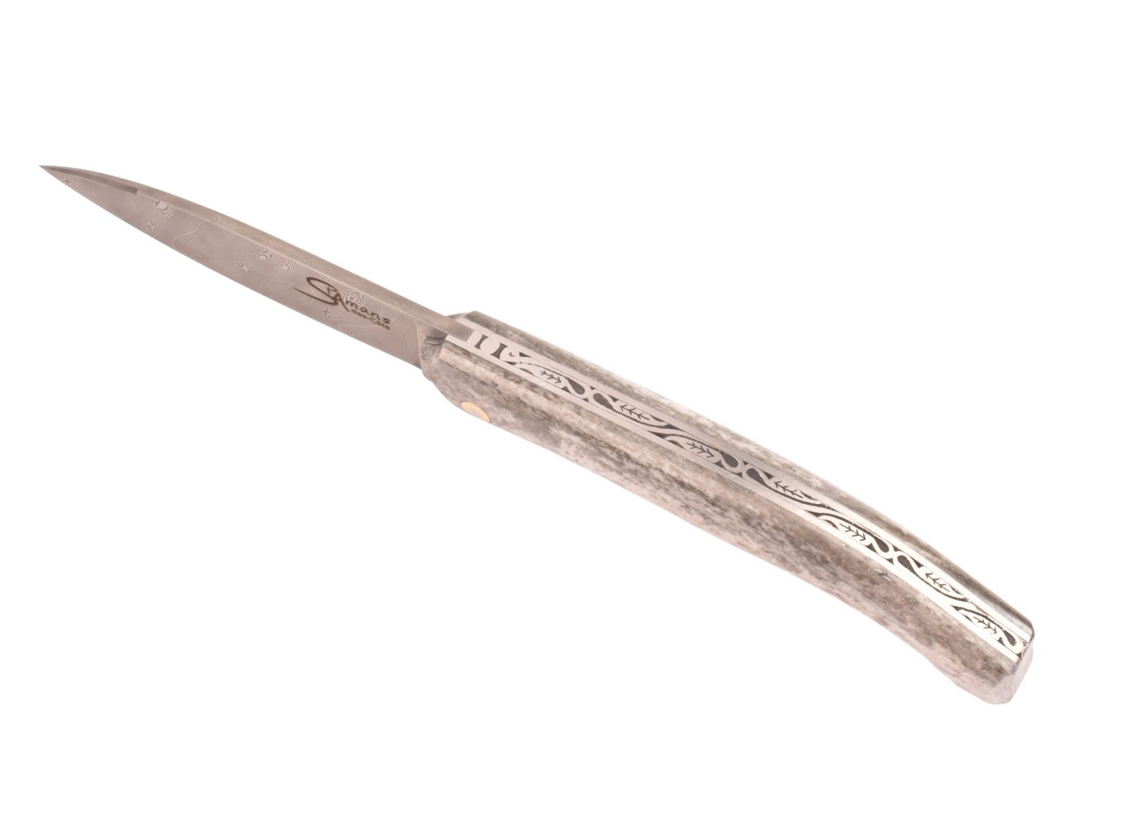 Saint Amans des Côts zakmes 12cm os teinté - lemmet in damast carbone