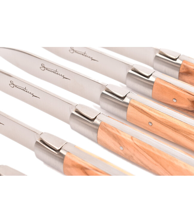 Prachtige Sauveterre doos met 6 steakmessen in olijfhout