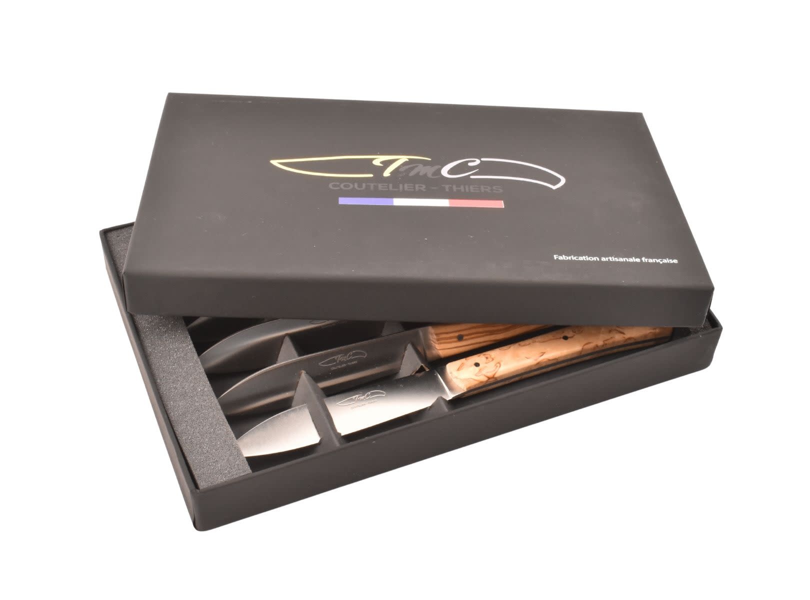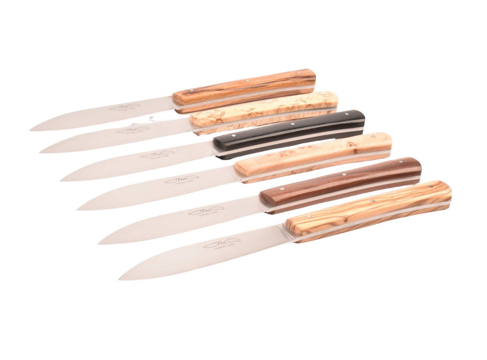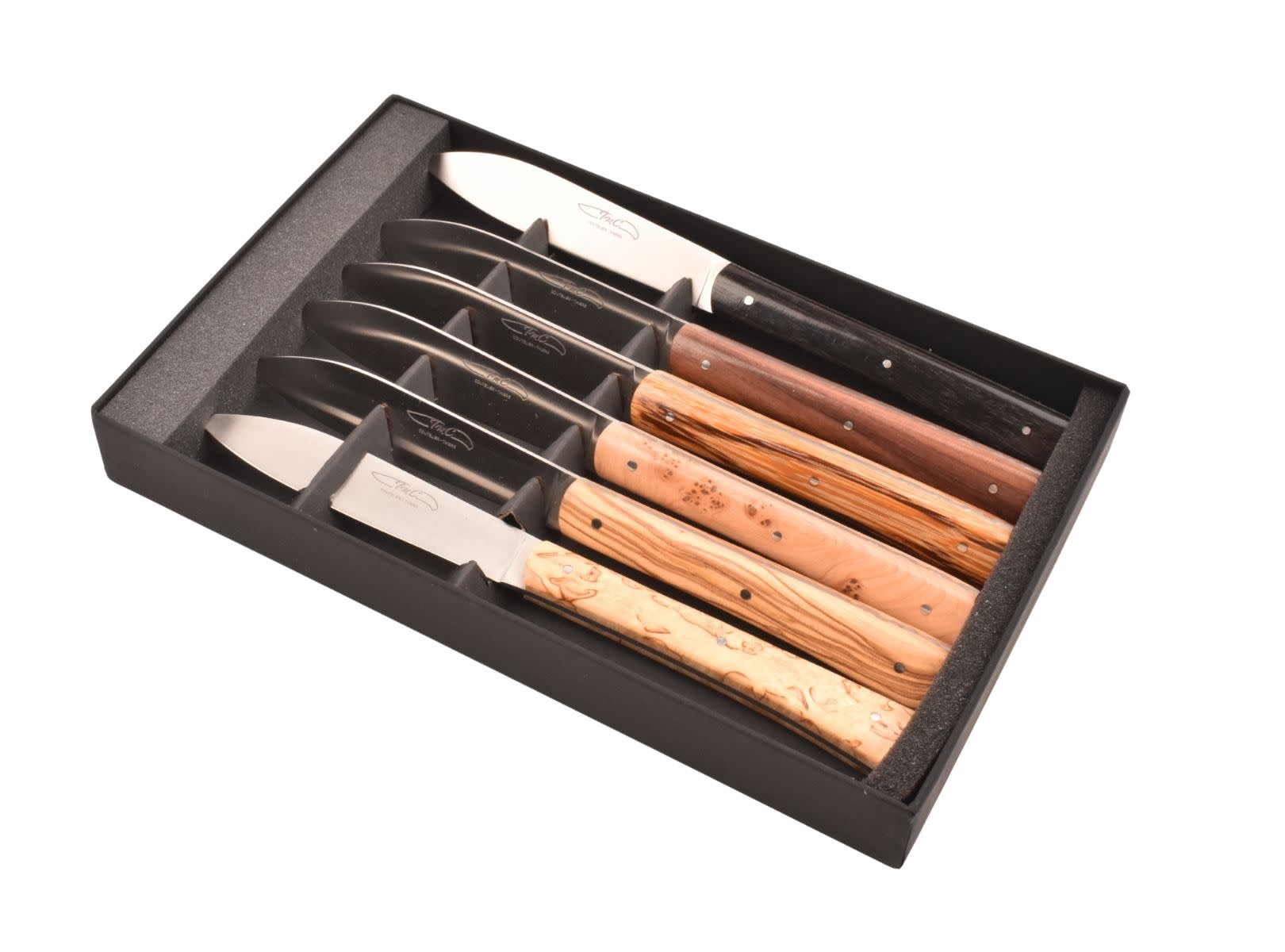 TMC Coutelier doos met 6 steakmessen 'Zen' in verschillende houtsoorten.