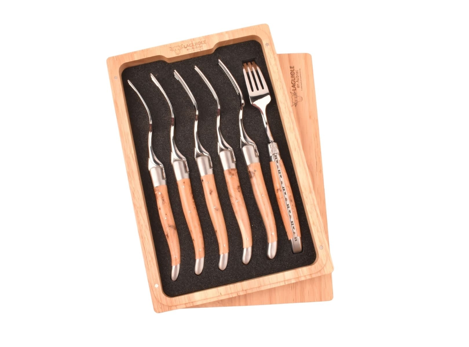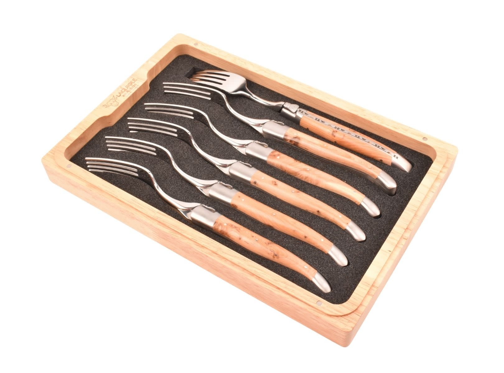 Luxe houten opbergdoos met 6 vorken van Laguiole en Aubrac in jeneverbes