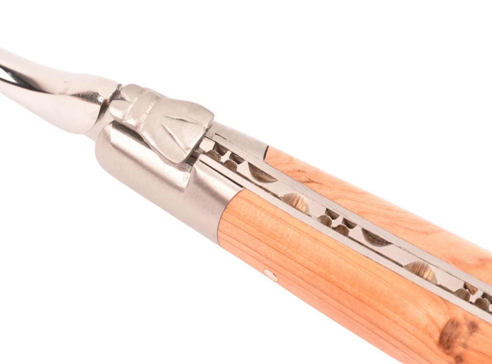 Laguiole en Aubrac zijn klassevolle handgemaakte messen met zeer veel oog voor detail. De messen zijn gemaakt volgens eeuwenoude traditie en authentiek vakmanschap. Om de authenticiteit van het mes te verzekeren is de rug voorzien van het typische kenmerkend Laguiole bijtje en het herderskruis in de handgreep.