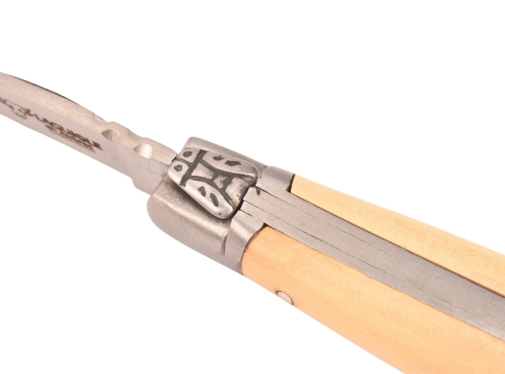 Laguiole en Aubrac zijn klassevolle handgemaakte messen met zeer veel oog voor detail. De messen zijn gemaakt volgens eeuwenoude traditie en authentiek vakmanschap. Om de authenticiteit van het mes te verzekeren is de rug voorzien van het typische kenmerkend Laguiole bijtje en het herderskruis in de handgreep.