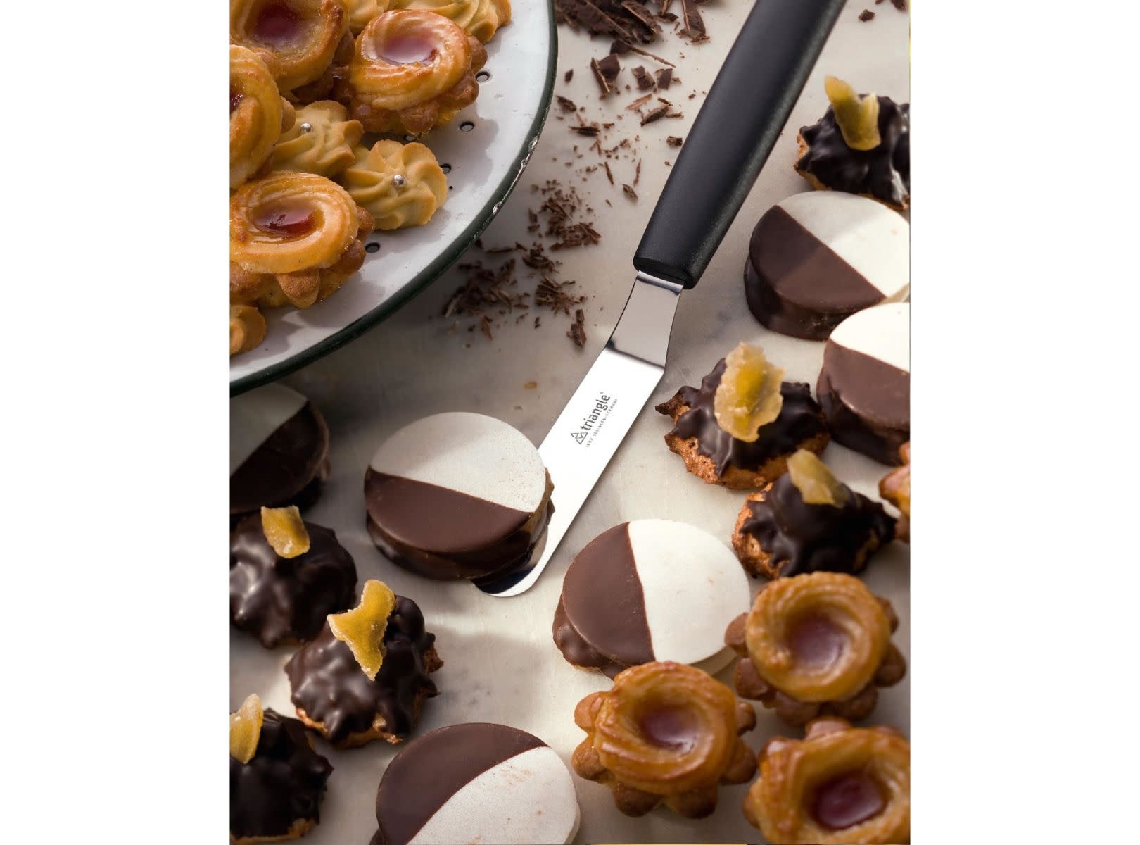 Deze handige paletten in verschillende afmetingen worden vaak gebruikt om patisserie op te heffen, over te hevelen of te glazuren. Glazuren wordt plotseling een pak gemakkelijker en je kan je gebak veel fijner afwerken. Dit palet heeft een knikje, zodat opheffen en afwerken nog gemakkelijker wordt.