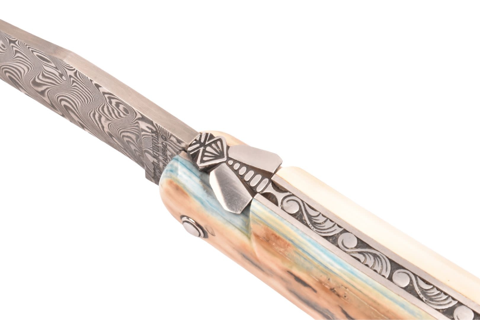 Laguiole en Aubrac Belle pièce 2024/9 - 12cm croute d'ivoire - damast