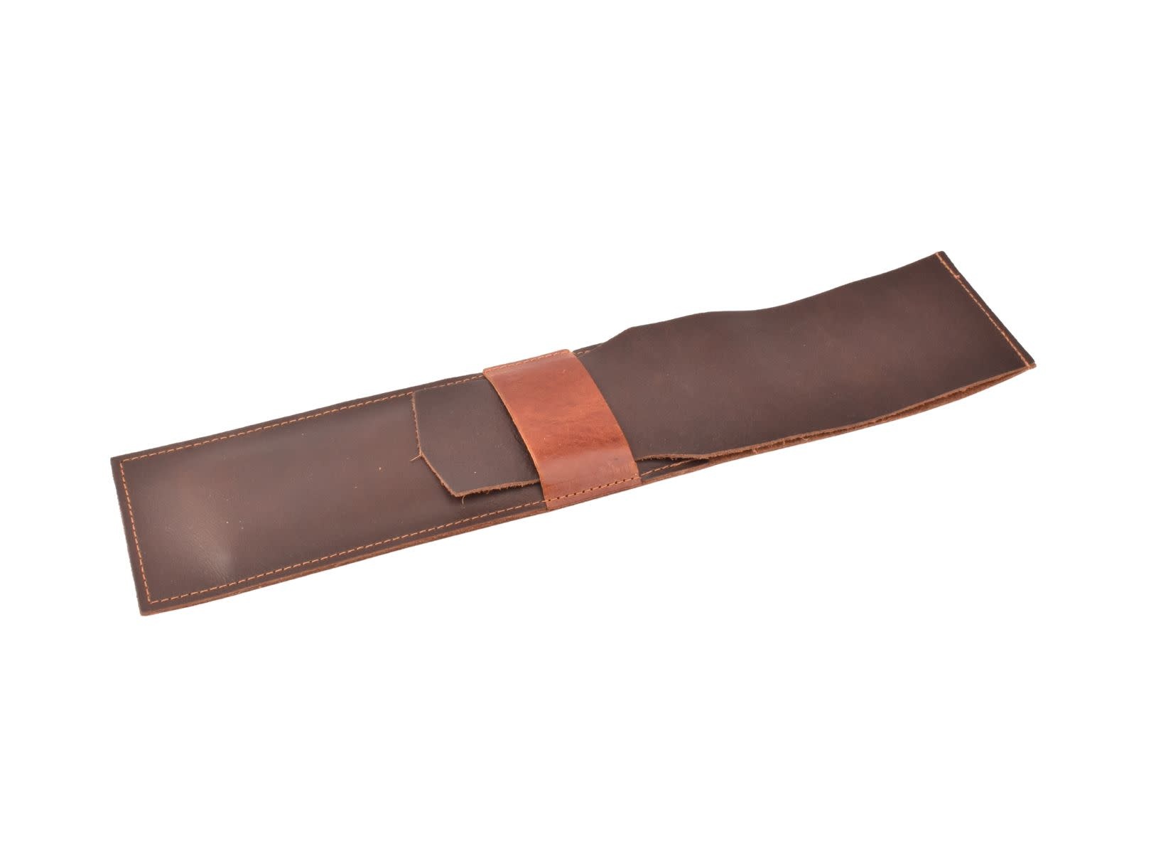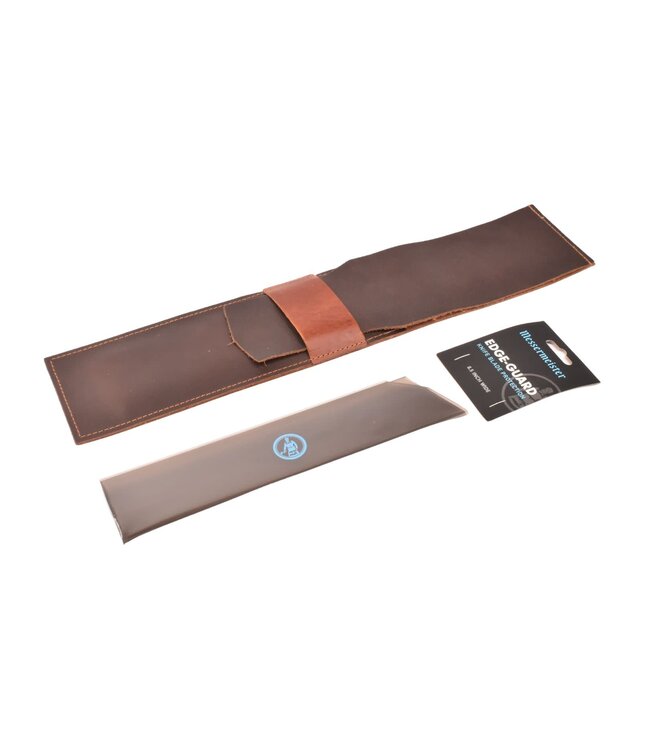 De Messenwinkel bruin lederen messenhoes en beschermer voor één mes van 20cm