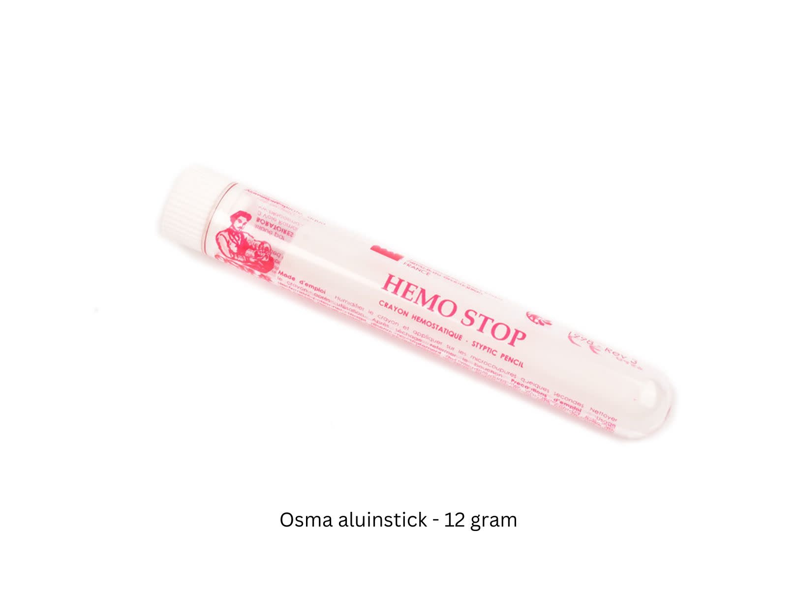 Handige aluinstick in beschermende hoes voor het snel stelpen van kleine bloedinkjes.