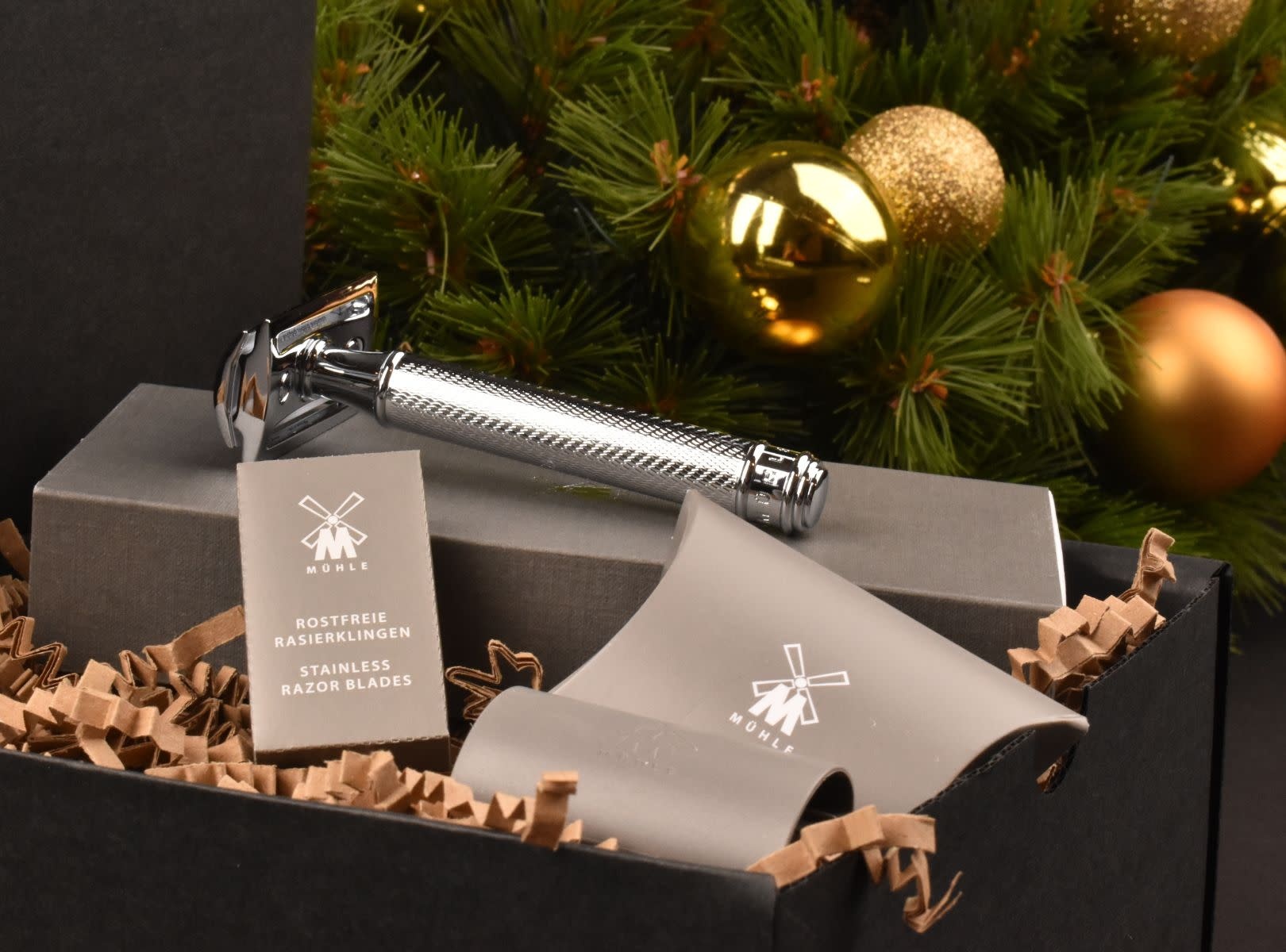 Leuke cadeaubox voor zowel mannen als vrouwen die zichzelf goed en veilig willen scheren met een kwalitatieve Muhle safety razor. De cadeaubox komt met gratis doosje scheermesjes en gratis beschermkapje.