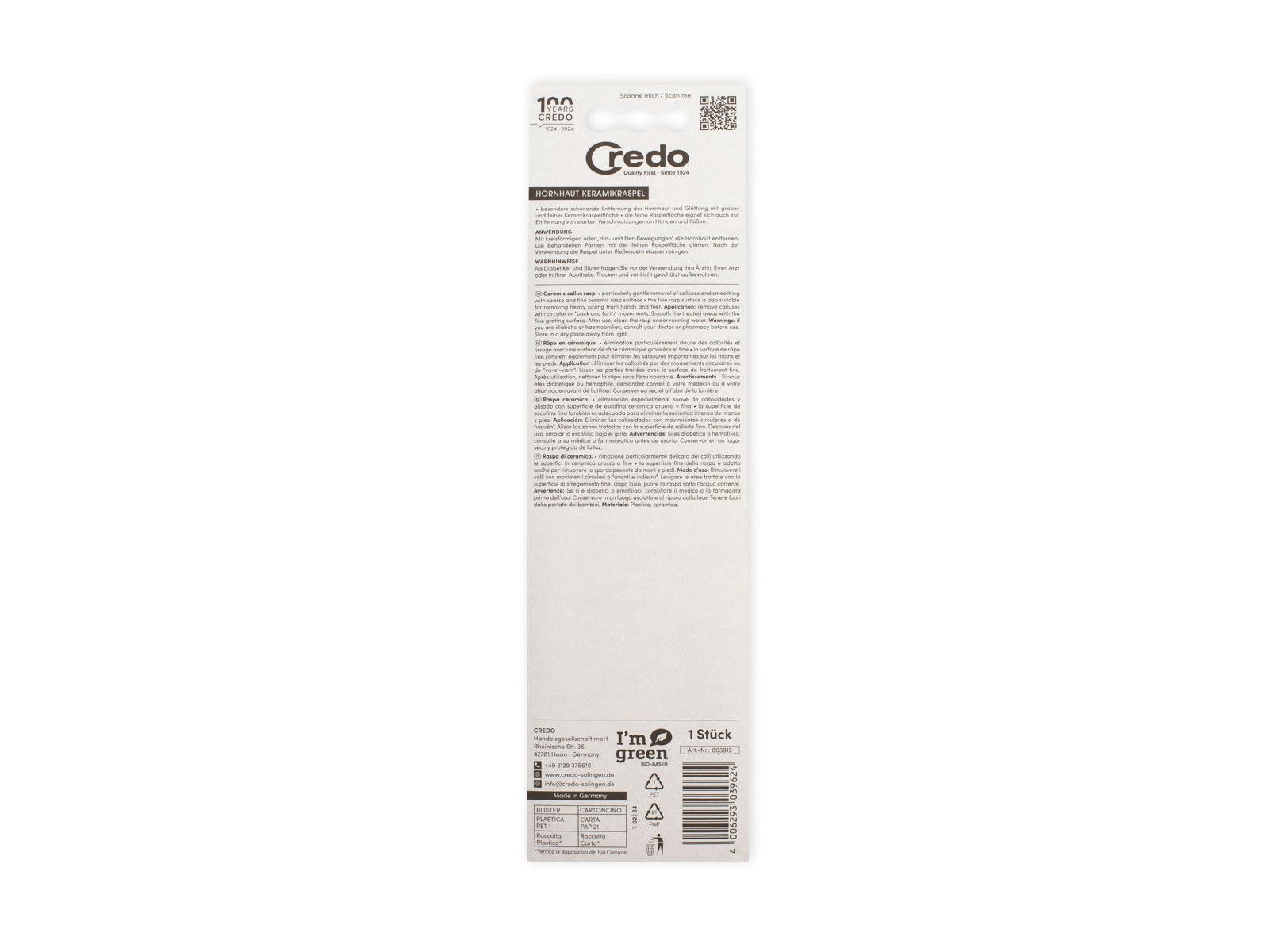 Met de keramische rasp van Credo verklaart u de oorlog aan eelt. Dit kwaliteitsproduct maakt de huid ook glad.