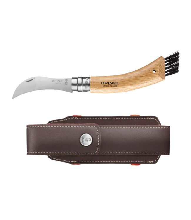 Met het gebogen lemmet van 8 cm kunt u makkelijker snijden. Met de gekartelde rand kunt u de paddenstoel schoon schrapen. De borstel van natuurlijk zijde aan het uiteinde van het eiken handvat is ideaal voor het schoonborstelen van de oogst.