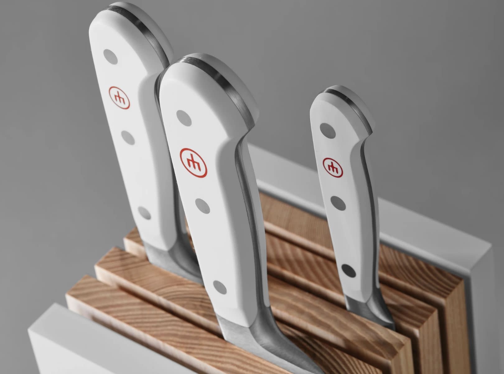 Het messenblok biedt ruimte aan gemiddeld zes messen, afhankelijk van de afzonderlijke grootte. Het messenblok past perfect bij de eigentijdse en elegante messen uit de Wüsthof Classic wit serie.