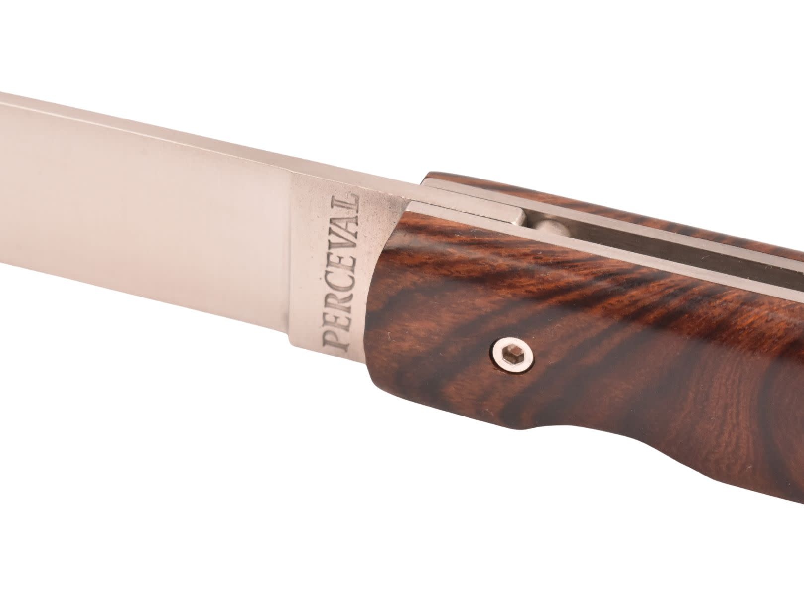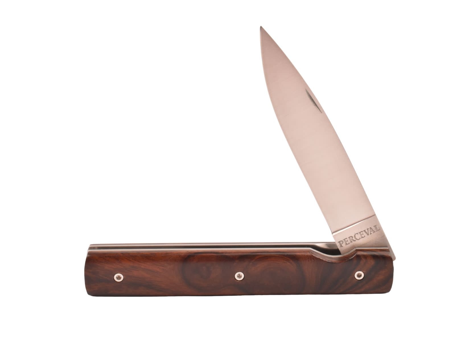 Een prachtig zakmes uit Frankrijk, gemaakt door Perceval. Dit ambachtelijk mes van zeer goede kwaliteit is afgewerkt met een prachtig handvat in bois de fer (ijzerhout).