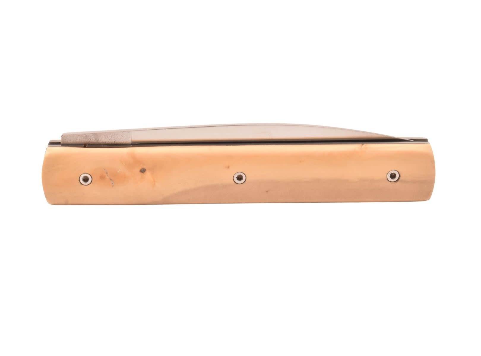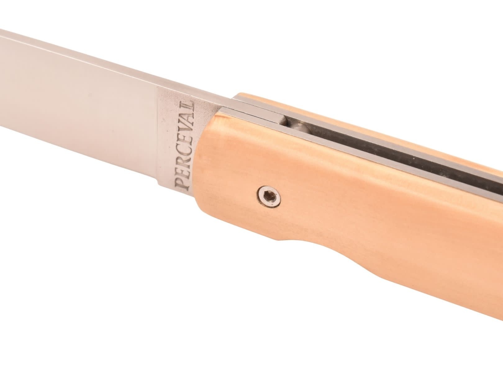 Een prachtig zakmes uit Frankrijk, gemaakt door Perceval. Dit ambachtelijk mes van zeer goede kwaliteit is afgewerkt met een prachtig handvat in loupe de buis (buxus wortel).