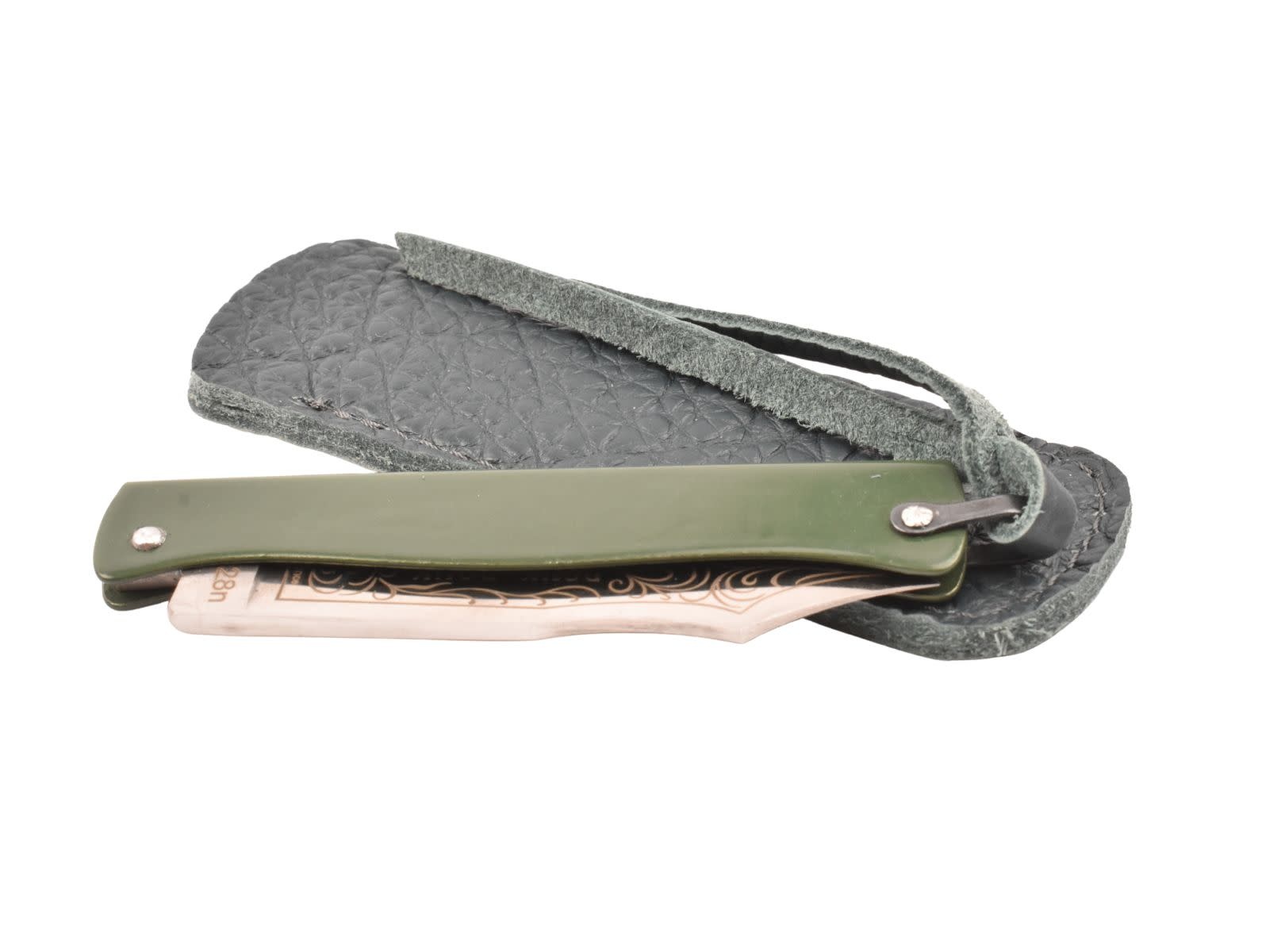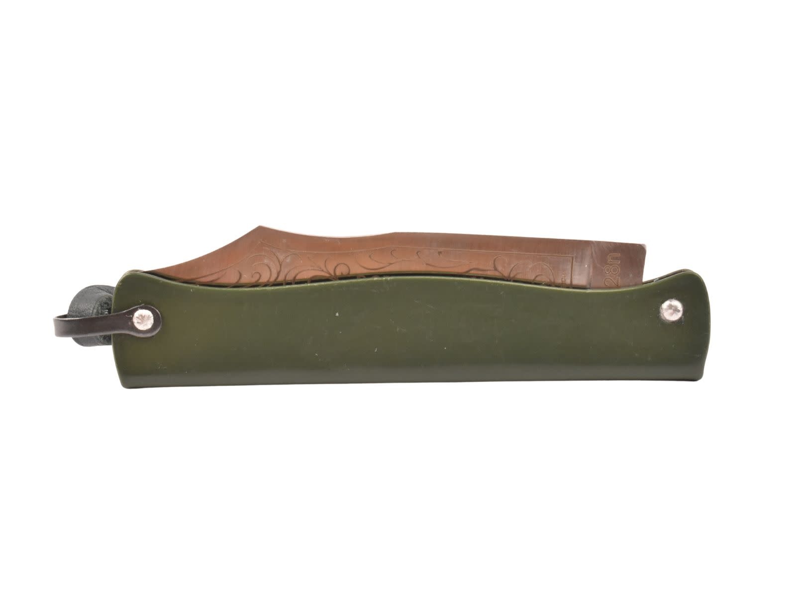M.C. Cognet Douk-Douk klein zakmes in roestvrij staal met groene handgreep en groen lederen etui