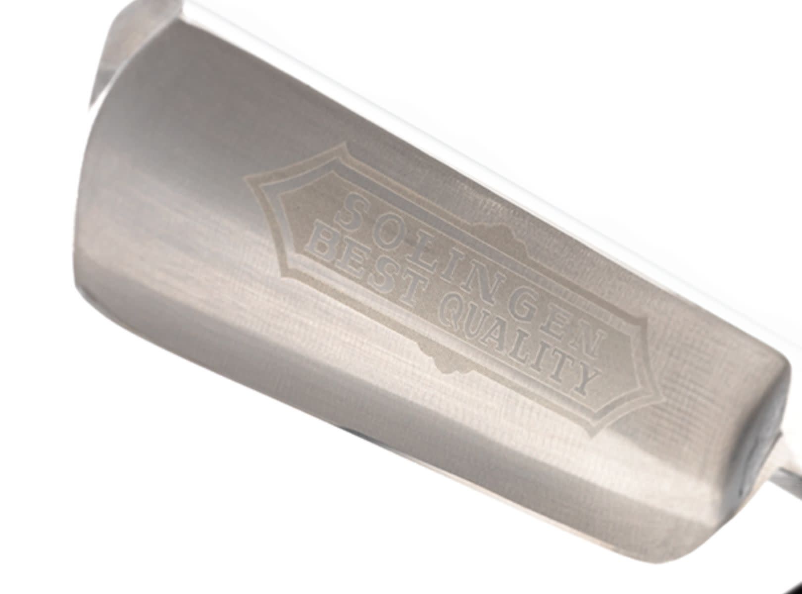 Qua scherpte, grondigheid en hanteerbaarheid doet het niet onder voor zijn broertjes. Alle oppervlakken van het scheermes zijn in verschillende stappen met de hand fijn geslepen. De boven- en onderkant van de tang zijn gekarteld, wat zorgt voor een stevige grip, zelfs met natte of schuimende vingers.