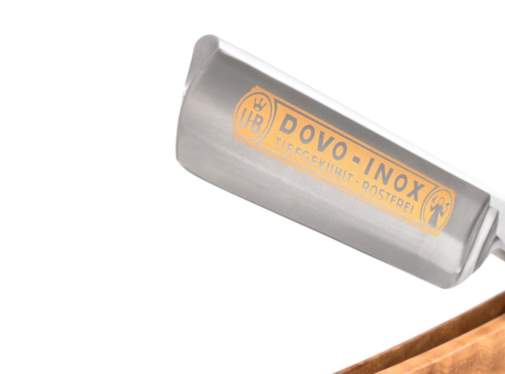 Dovo open scheermes 5/8 - inox rvs - olijfhout