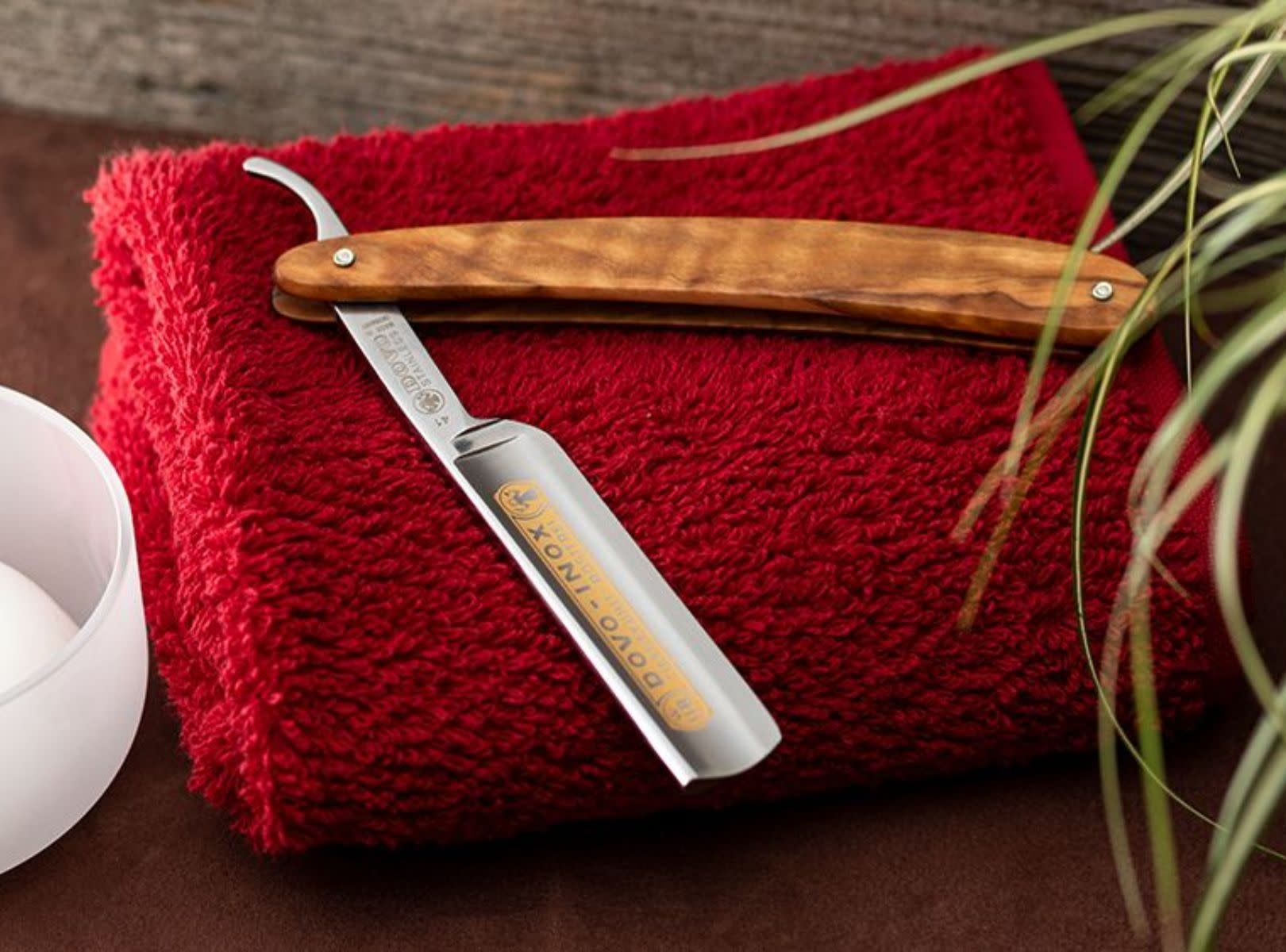 Olijfhout is een uniek, natuurlijk materiaal. Het is harder dan inheems eiken- of beukenhout en heeft een hoge weerstand tegen schimmelvorming. Zelfs onbehandeld olijfhout is bovengemiddeld waterbestendig, waardoor het het perfecte materiaal is voor open scheermessen, scheerkwasten en scheermesjes.