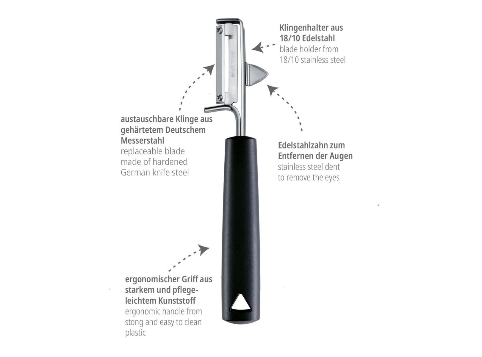 Met zijn ergonomische ontwerp en hoogwaardige materialen is dit de ultieme tool voor iedereen die waarde hecht aan perfect geschilde groenten en fruit.