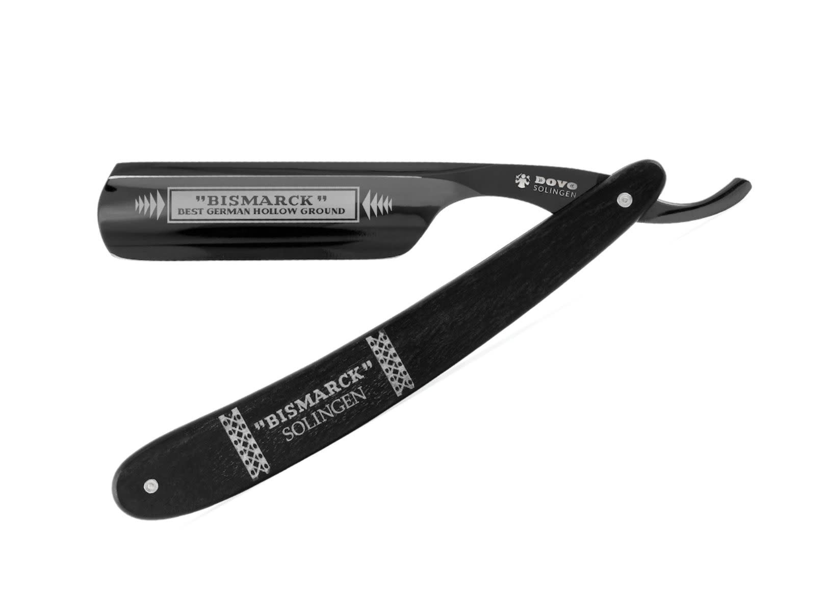 Dit 6/8 inch Dovo open scheermes heeft de naam Bismarck® gekregen. De naam staat voor het hoogste kwaliteit open scheermesontwerp uit Solingen in de 20e eeuw. Deze traditie van uitmuntendheid is nog steeds actueel. Onder vele fans wordt het gepolijste ontwerp ook wel de "zwarte prins" genoemd. De stijlvolle zwarte afwerking wordt bereikt door een slijtvaste polijsting.