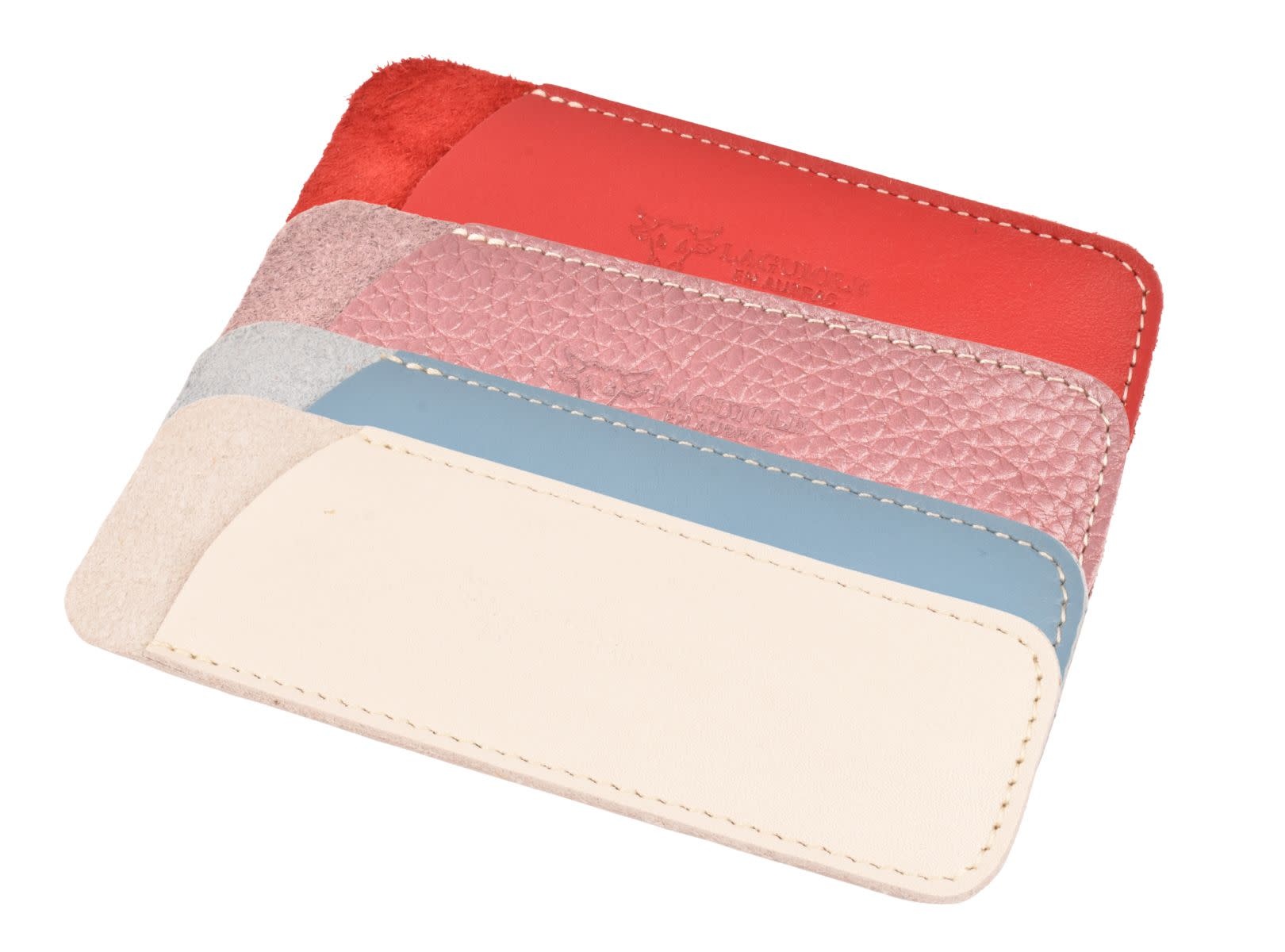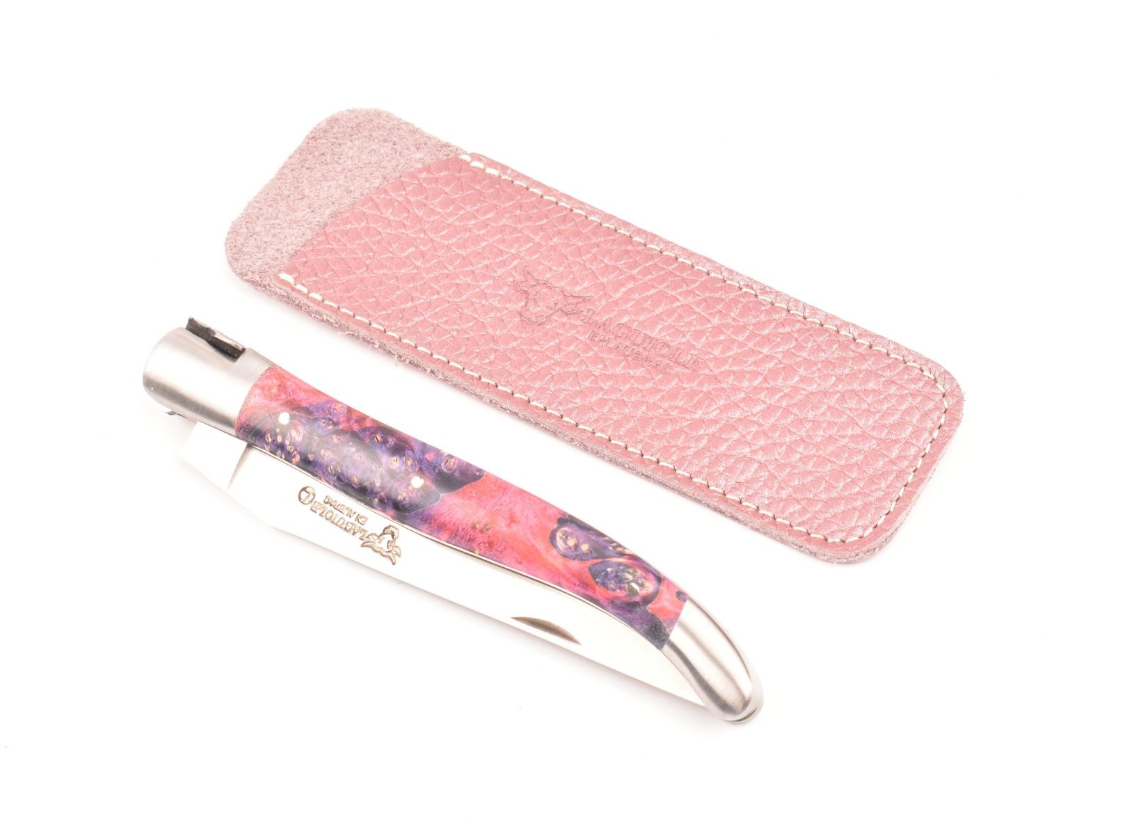 Mooie, veelkleurige lederen pochette van Laguiole en Aubrac.