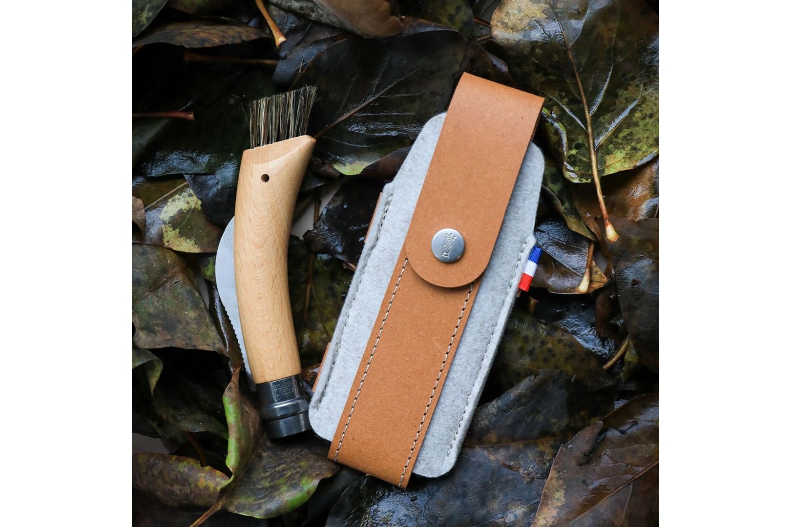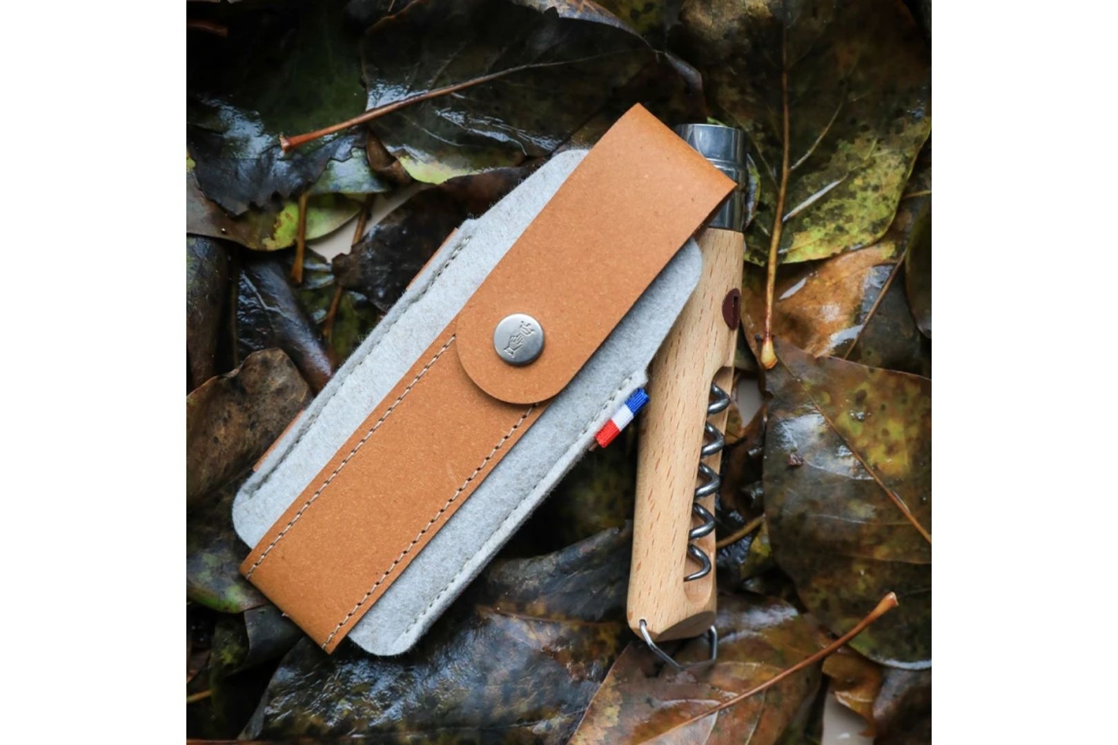 Outdoor etui van gerecycleerd leer voor grote Opinel zakmessen