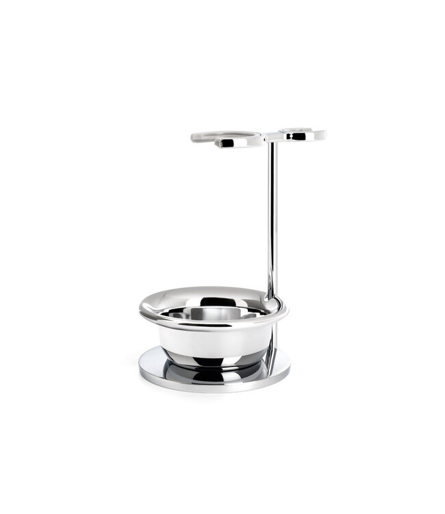 Muhle gechromeerde stabiele staander/houder met zeepbakje, voor scheermes en kwast
