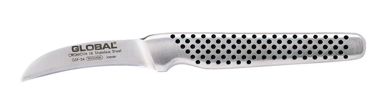 Het Global GSF-34 tourneermesje is voorzien van een gebogen lemmet van 5 cm en een extra lang heft voor optimale grip tijdens het schillen. Dit gebogen schilmesje of officemes is eigenlijk een klein koksmesje. Ideaal voor het schillen en snijden van kleinere ingrediënten, zoals fruit en groenten.