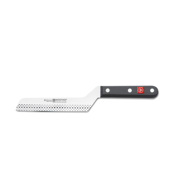 Dit kaasmes uit de Wüsthof Gourmet-serie is ideaal voor het snijden van kaas. Het kaasmes is 12 centimeter lang en heeft een speciaal lemmet, zodat de kaas er niet aan blijft kleven.