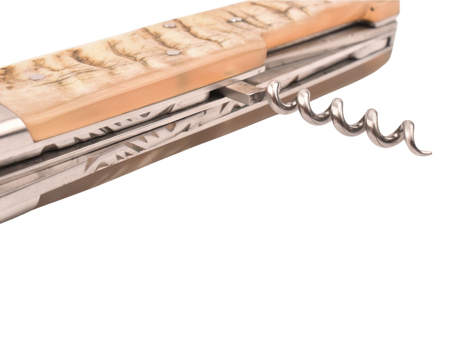 - 4-delig: groot mes, kurkentrekker, flesopener/schroevendraaier en klein mesje/darmverwijderaar