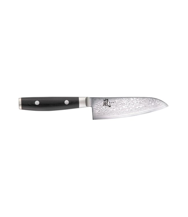 Santoku koksmes uit de Japanse Ran serie. Het mes is 12,5cm en heeft een 69 lagen damast lemmet met een zwart canvas-micarta handvat. Lees meer.