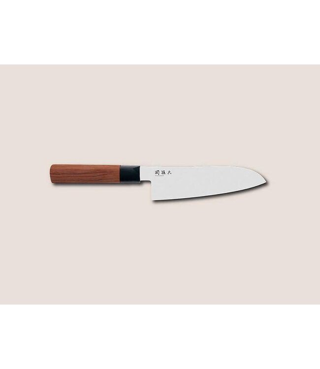 Japans santokumes uit de Seki Magoroku serie van KAI met een vlak lemmet van 17cm en een houten handgreep van 13.4cm Lees meer.