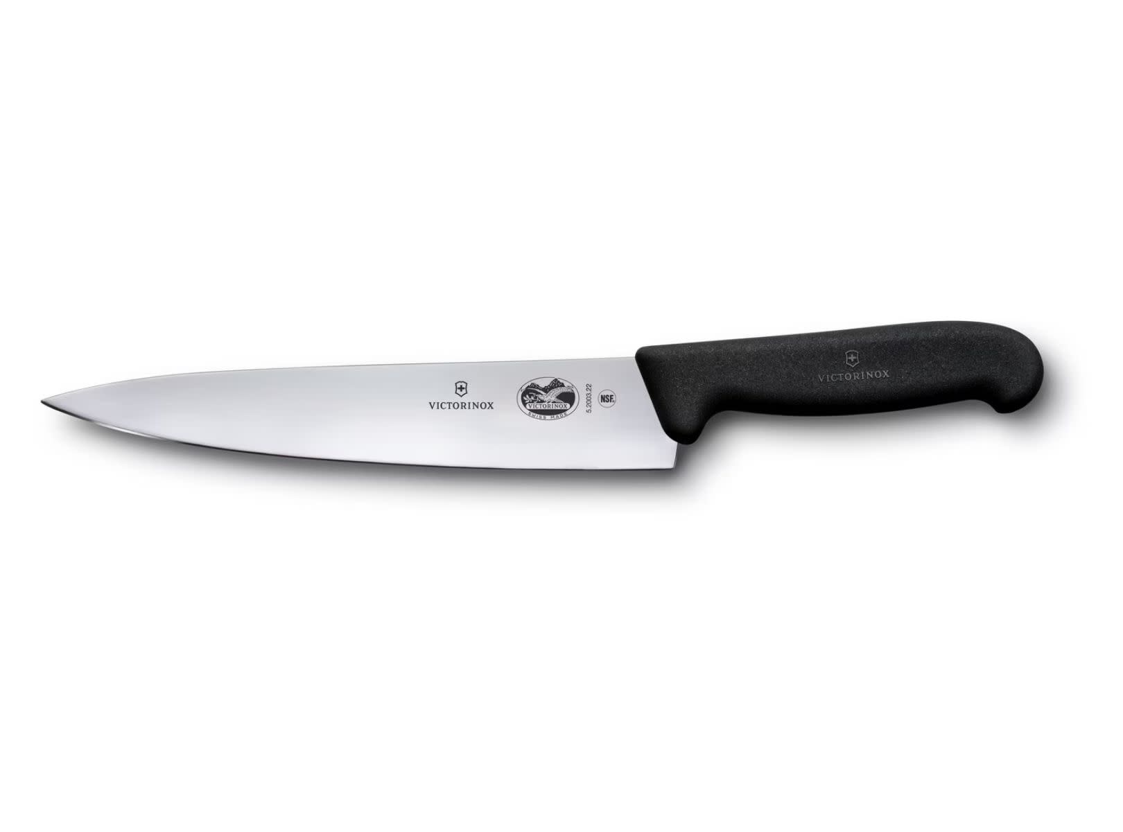 De handgreep is gemaakt van Fibrox. Dat heeft de eigenschappen van rubber, maar het wordt verwerkt als plastic. Fibrox is dus vrij stroef. Groot voordeel is dat je je ook met natte handen of handschoenen geen zorgen hoeft te maken dat het mes uit je handen glipt. Het solide ontwerp zorgt ervoor dat voedsel, schimmel of ander vuil nergens tussen kan komen en zich kan hechten. Daarbij zijn de Fibrox-messen ook nog eens eenvoudig schoon te maken. Ze zijn namelijk vaatwasmachinebestendig. Uiteraard adviseren wij altijd om de messen met de hand af te wassen omwille van het scherptebehoud van de snede.