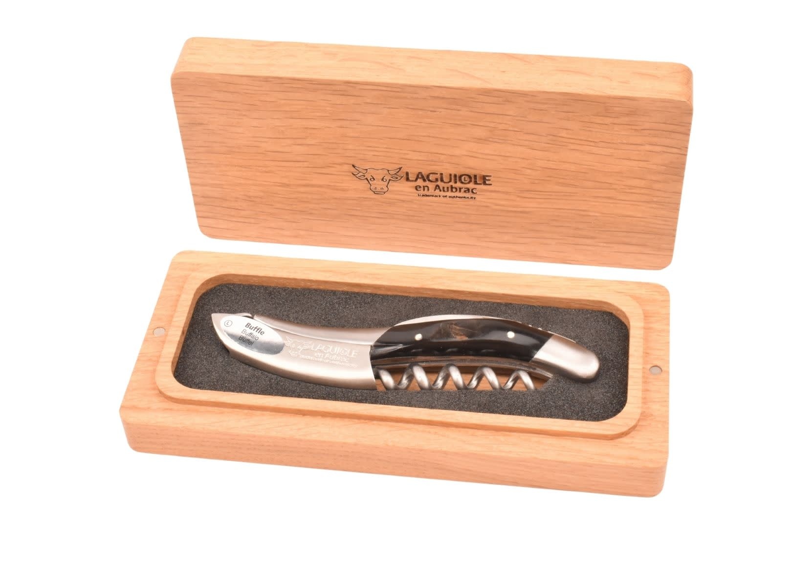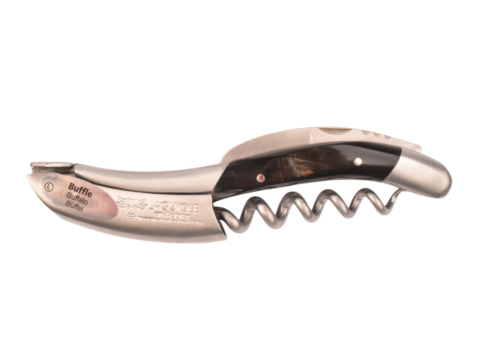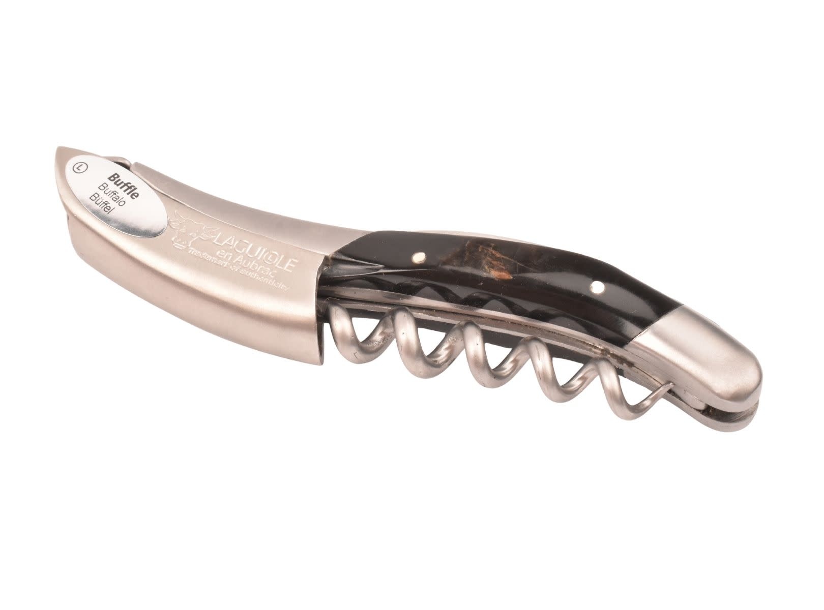 Laguiole en Aubrac kurkentrekker met heft in donker buffelhoorn - mat