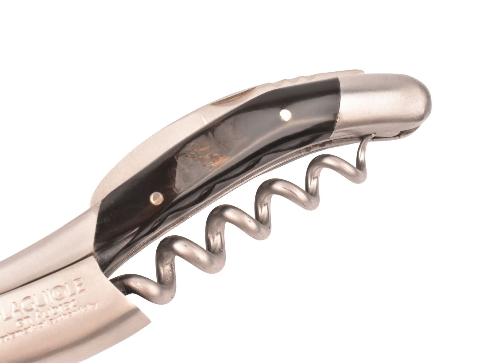 De kurkentrekkers van Laguiole zijn niet alleen uniek door hun gedetailleerde afwerking, ze slagen er ook in om zelfs de oudste flessen te ontkurken zonder dat de kurk breekt. Dat komt omdat het de veer een kegelvormig uiteinde heeft, en dus preciezer kan werken. Het mesje aan de kurkentrekker is zeer subtiel gekarteld waardoor de folie van je wijnfles er gemakkelijker afgesneden kan worden. Ten slotte is er nog de hevel, die een dubbele functie heeft. Ten eerste zorgt hij ervoor dat je de kurk gemakkelijk uit de fles kan heffen, ten tweede doet hij ook dienst als een flesopener. Ideaal voor op een feestje of receptie en één van je gasten drinkt liever bier of frisdrank.