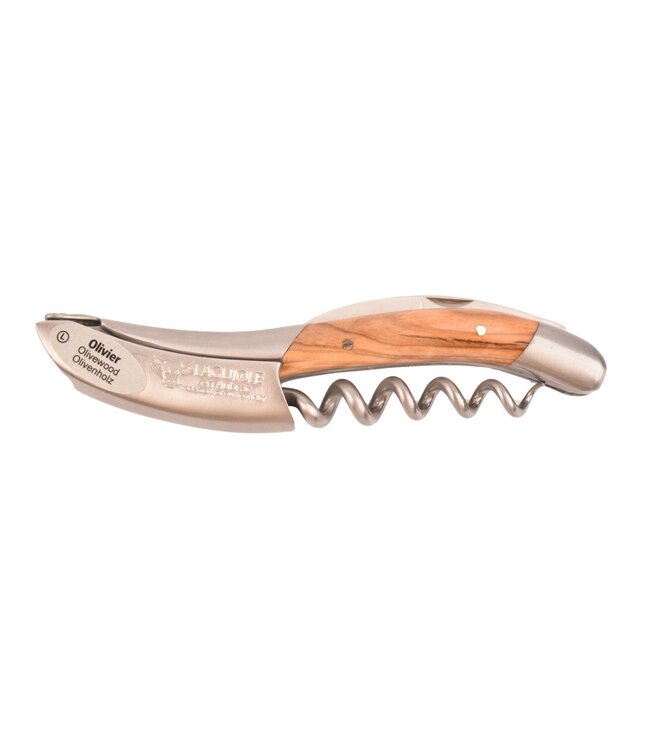 Kurkentrekker van Laguiole en Aubrac met heft in olijfhout en platines guillochées