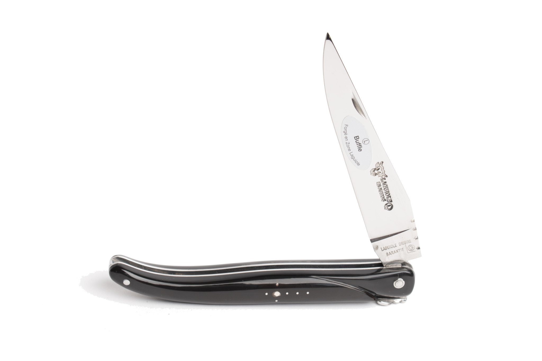 Een authentiek handgemaakt Frans Laguiole mes van hoge kwaliteit met heft in buffelhoorn.