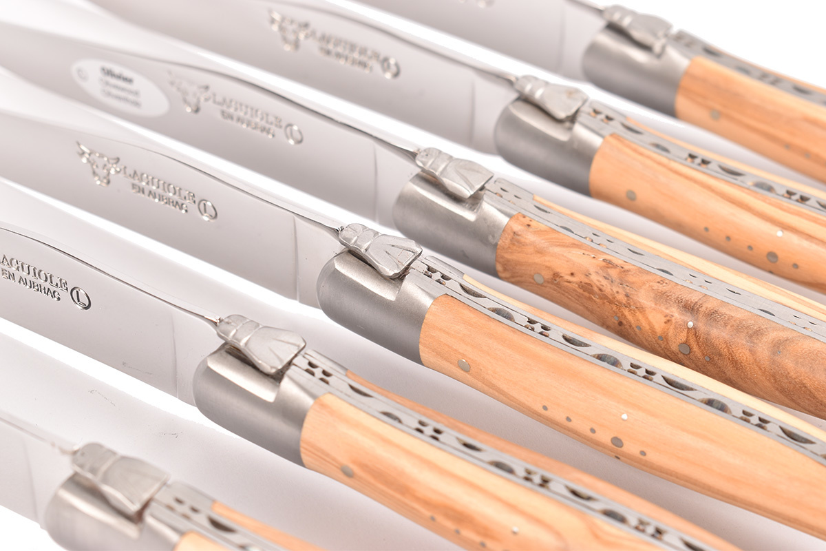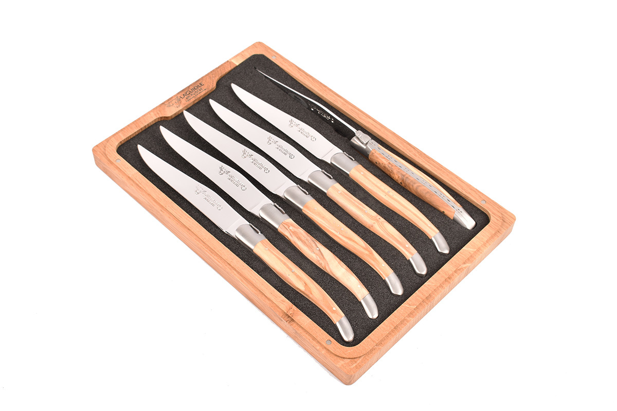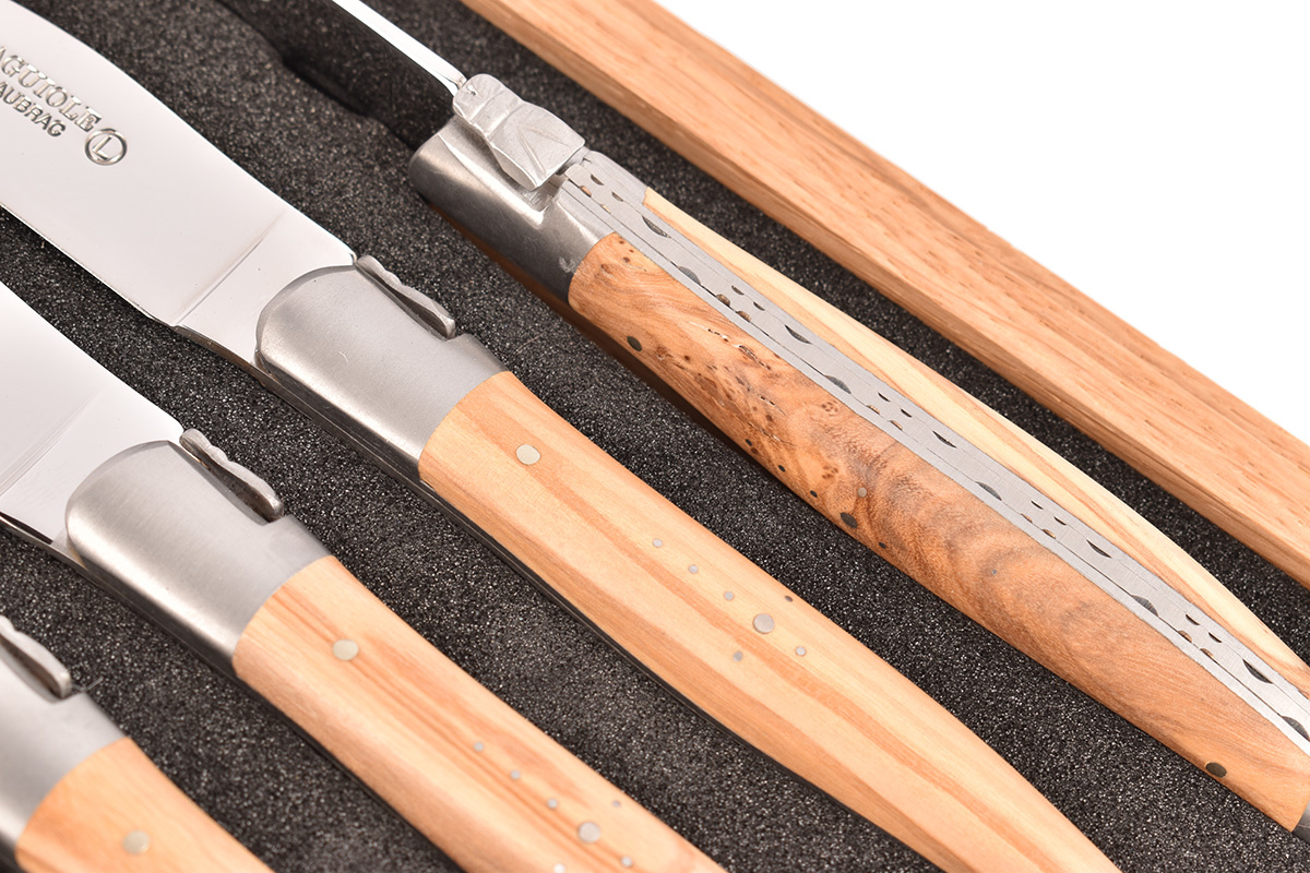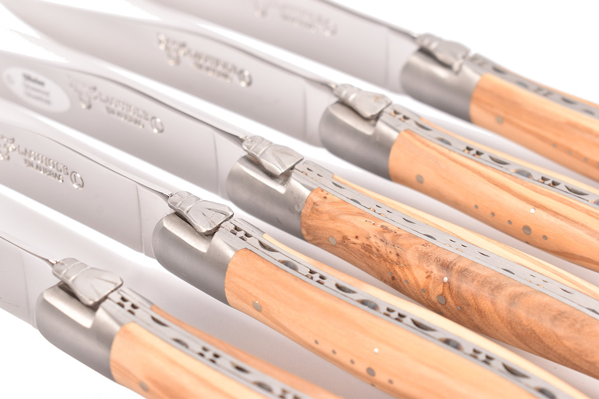 Laguiole en Aubrac 6 steakmessen olijfhout
