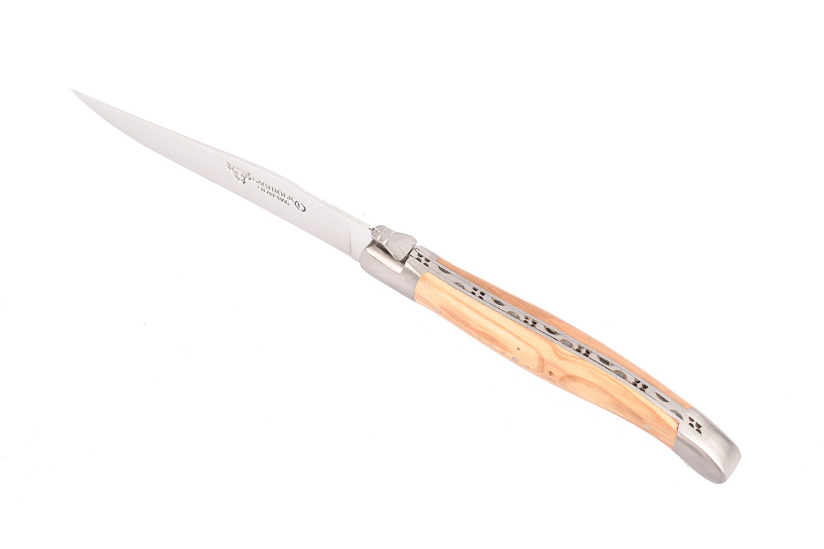 De dynamische vormgeving van elk Laguiole mes zorgt ervoor dat u vlot door een stuk vlees kan snijden. Door het handwerk en de natuurlijke materialen is ieder mes uniek.